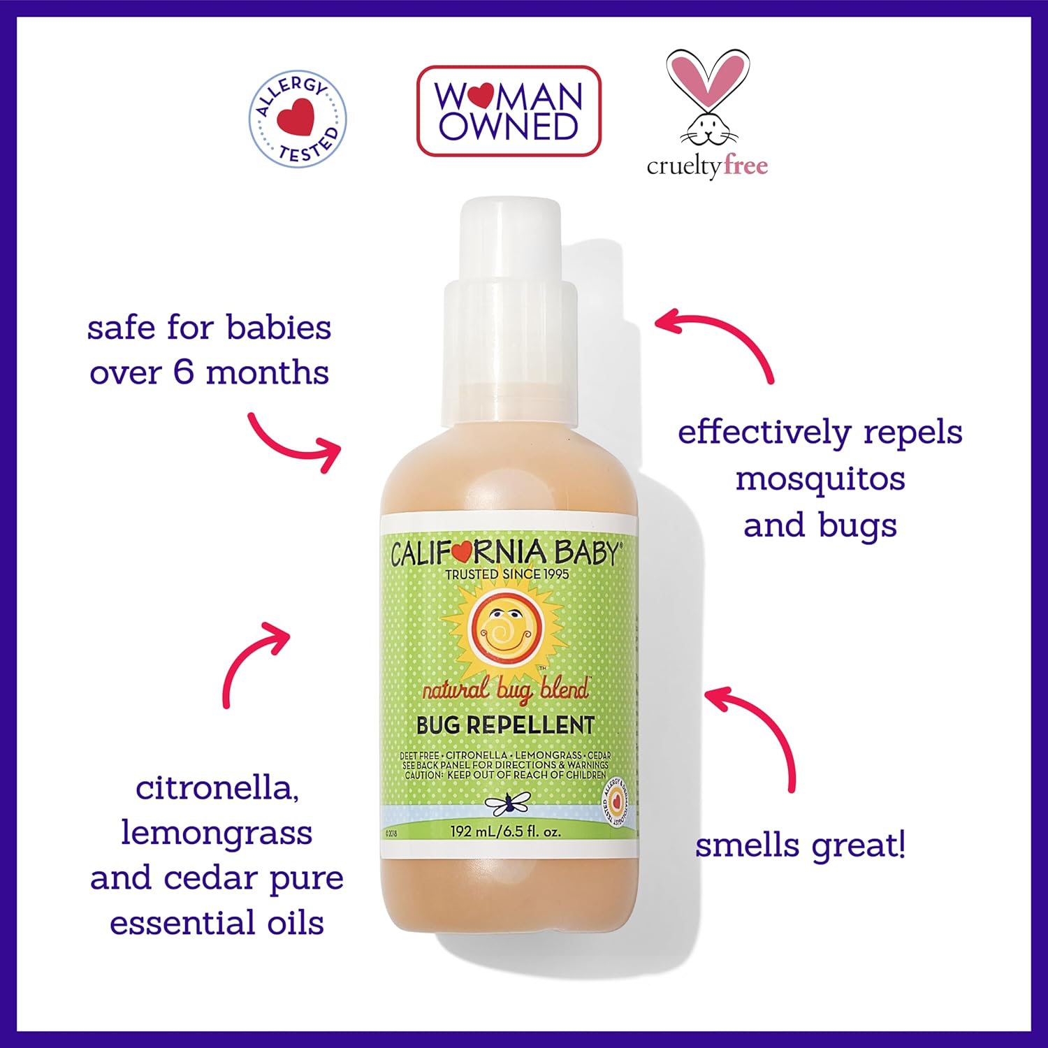 California Baby Natural Bug Spray | DEET Free Mosquito Repellent | Baby + Kids Bug Spray | Citronella Spray | Great Smell | 192 mL / 6.5 oz.