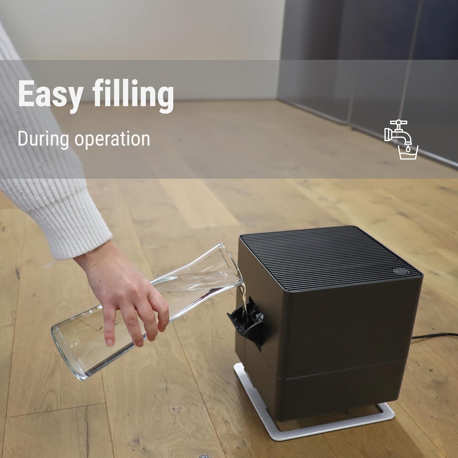 - FOR HEALTHY ROOM AIR: If the room air is too dry, the Oskar humidifier provides a quick remedy – as a very economical evaporator, he allows precise humidification of the air thanks to his integrated hygrostat.