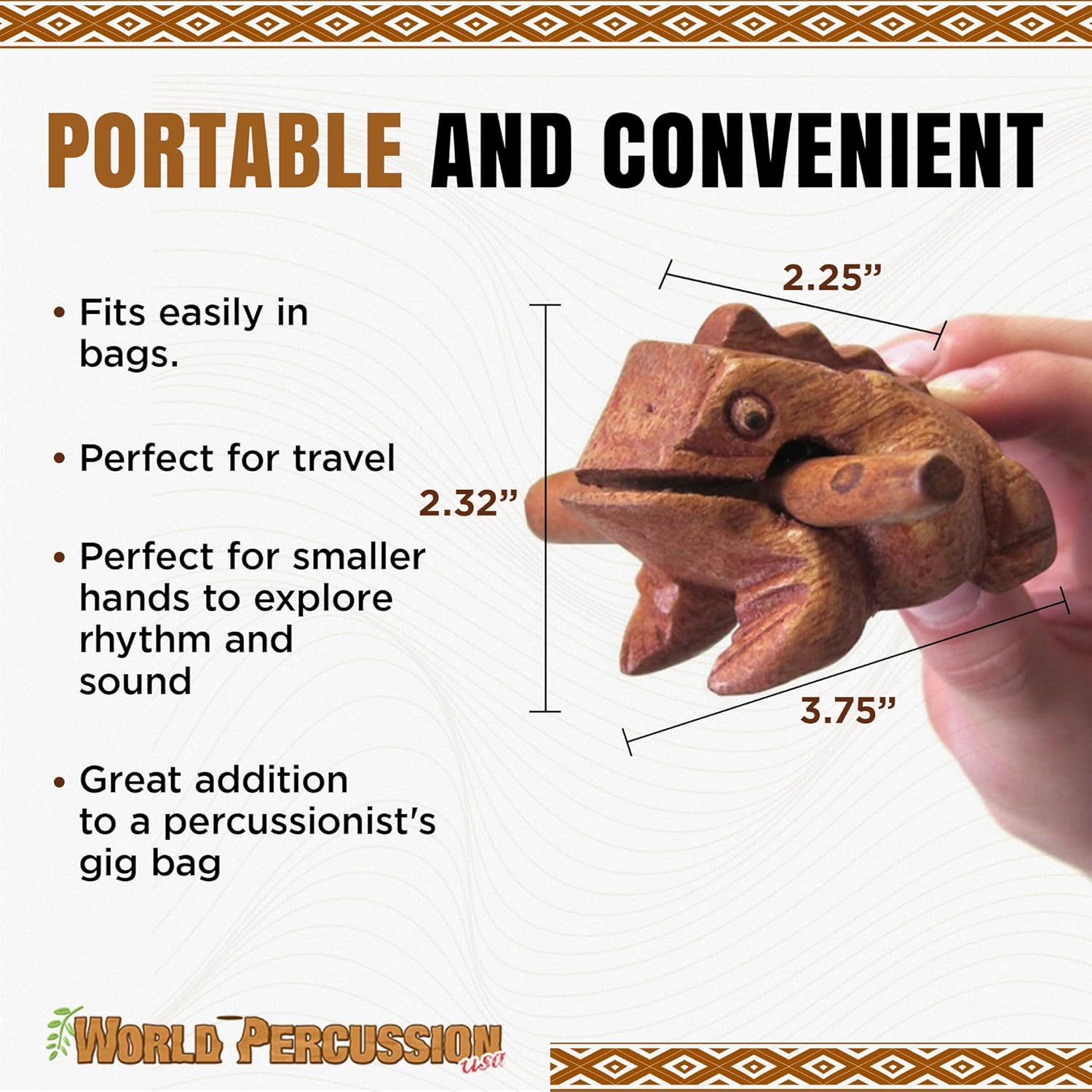 Deluxe Medium 4” Wood Frog Guiro Rasp - Percussion Musical Instrument Tone Block - Wooden Instrument with Stick, Frog Noise Maker by World Percussion USA