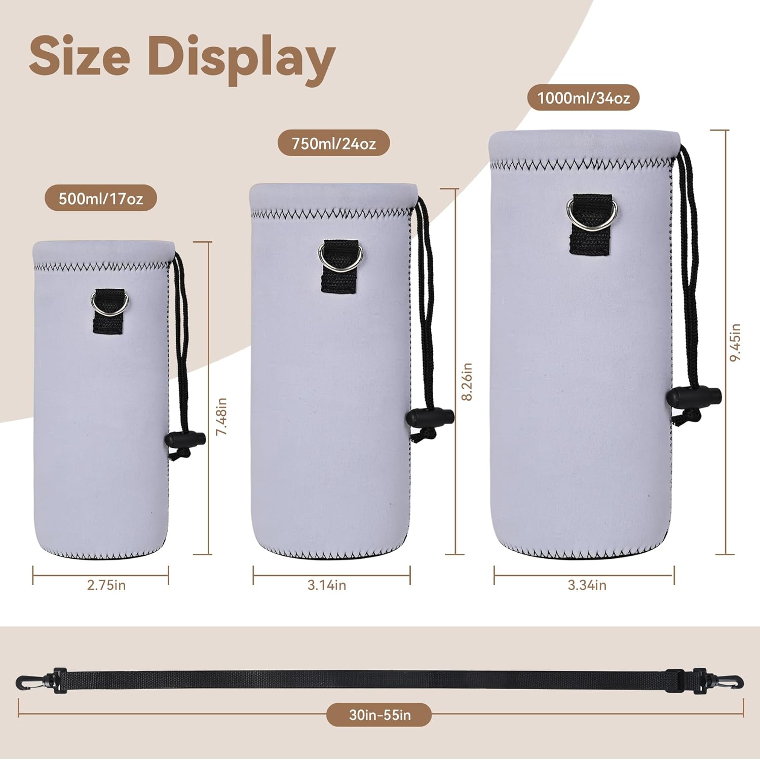 - AVAILABLE IN TWO SIZES:Our AUPET water bottle Holders has two sizes for you to choose,750ML:length: 8.26 inches,Diameter: 3.14 inches;1000ML: length: 9.45 inches,Diameter: 3.35 inches,the neoprene stretches to fit most bottles