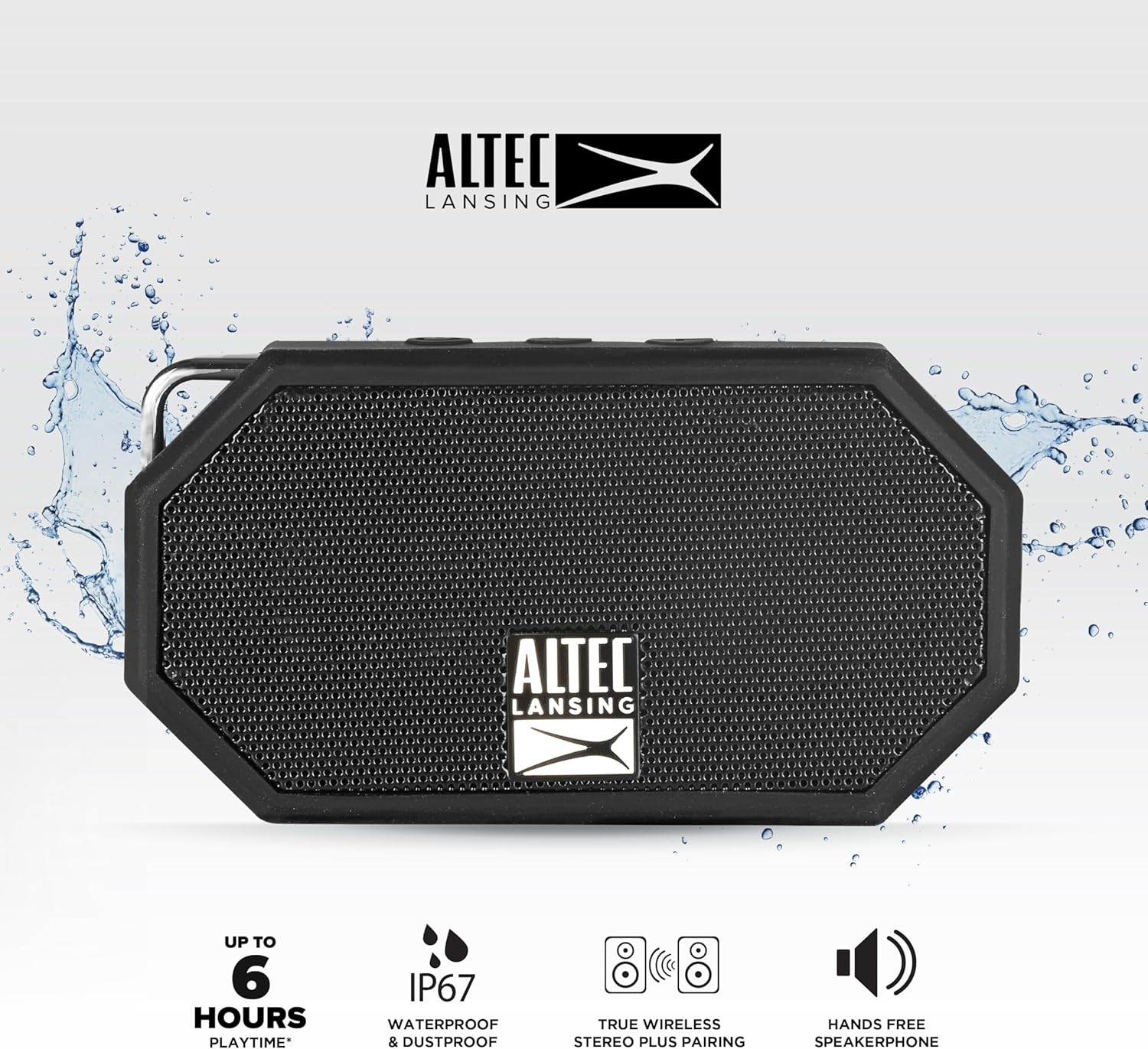 Altec Lansing Mini H2O - Waterproof Bluetooth Speaker, IP67 Certified & Floats in Water, Compact & Portable Speaker for Hiking, Camping, Pool, and Beach,Black