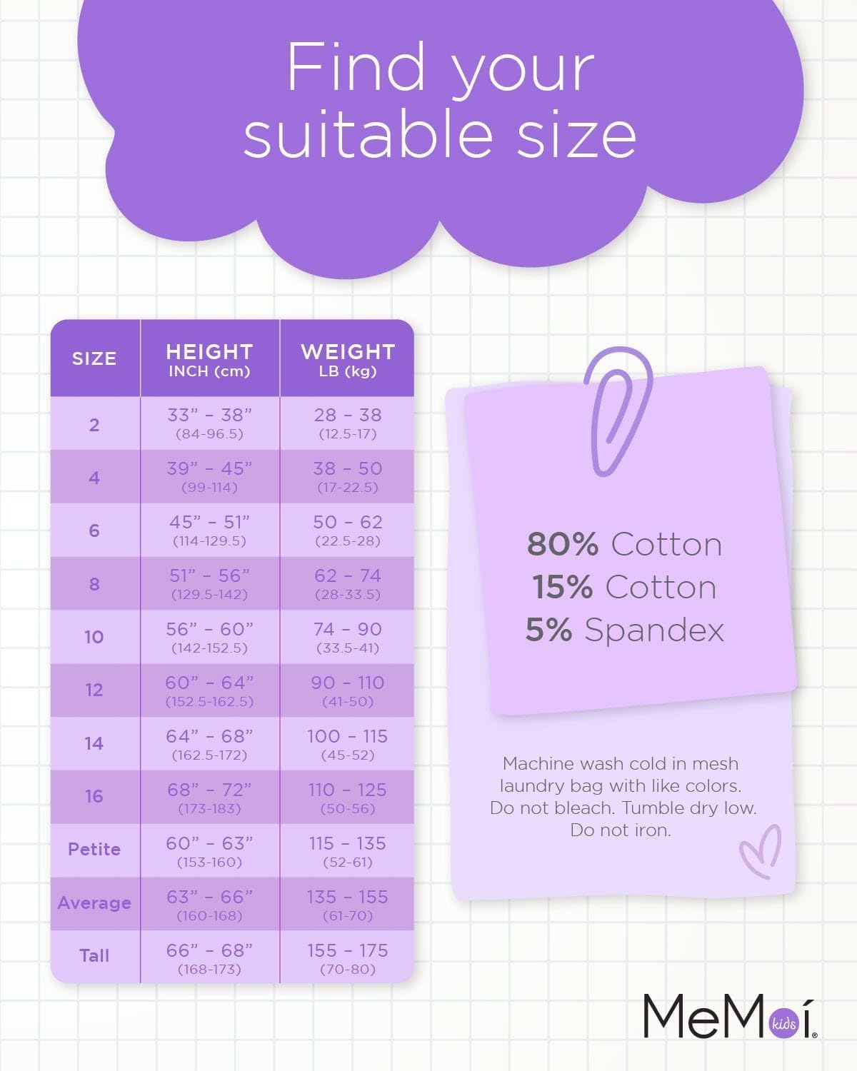 MeMoi Soft Pima Cotton Tights for Girls, Soft and Lightweight Opaque Tights for girls - Sizes 8 to 16
