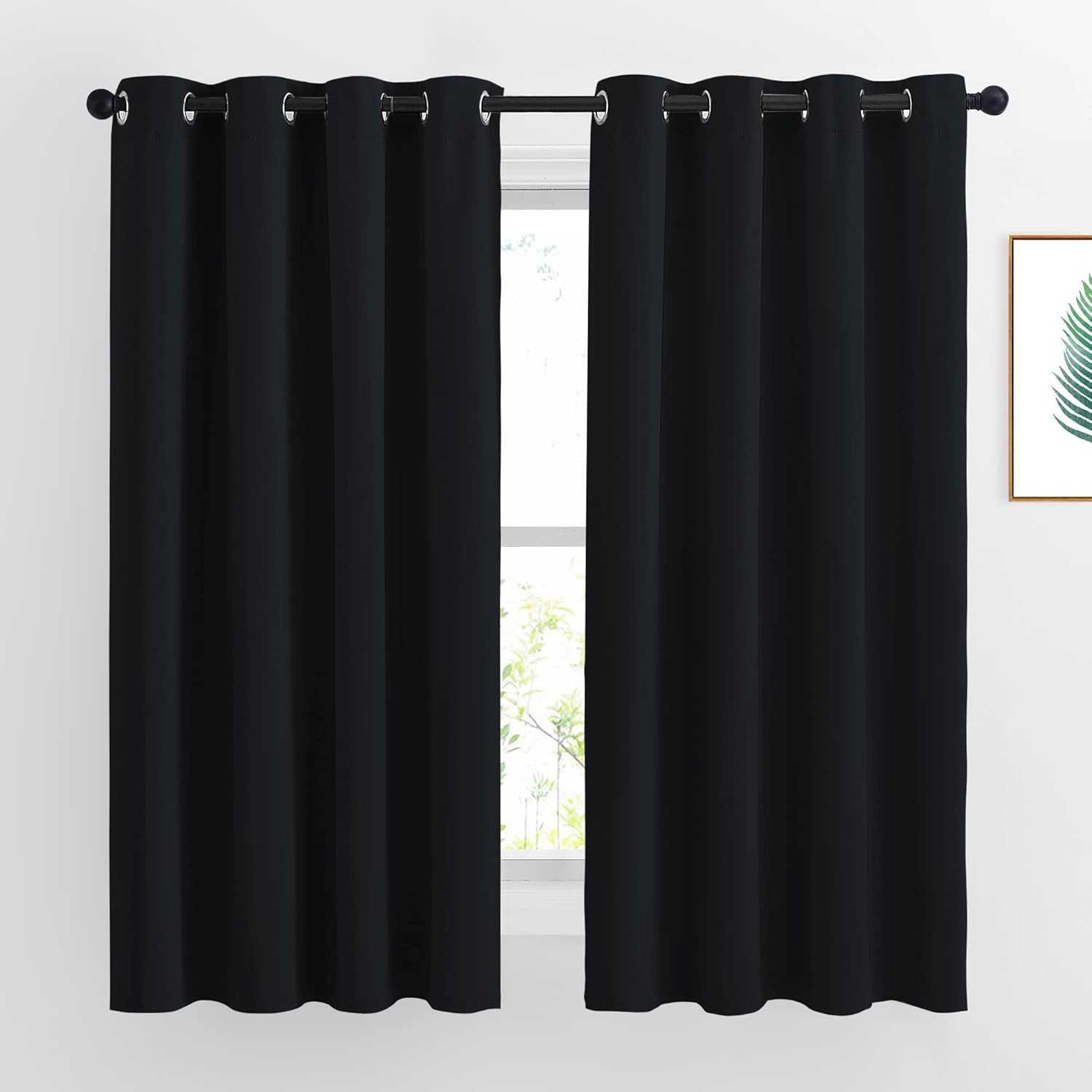 NICETOWN Blackout Curtains 63 inch Length 2 Panels Burg - Easy Care Solid Thermal Curtains Grommet Blackout Window Treatments for Bedroom/Kids Room (W52 x L63, Black)