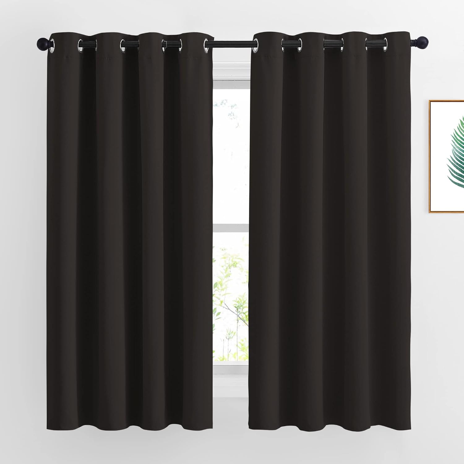 NICETOWN Blackout Curtains Panels for Window - Triple Weave Energy Saving Thermal Insulated Solid Grommet Blackout Drapes for Kitchen (1 Pair, 52 inches by 63 Inch, Toffee Brown)