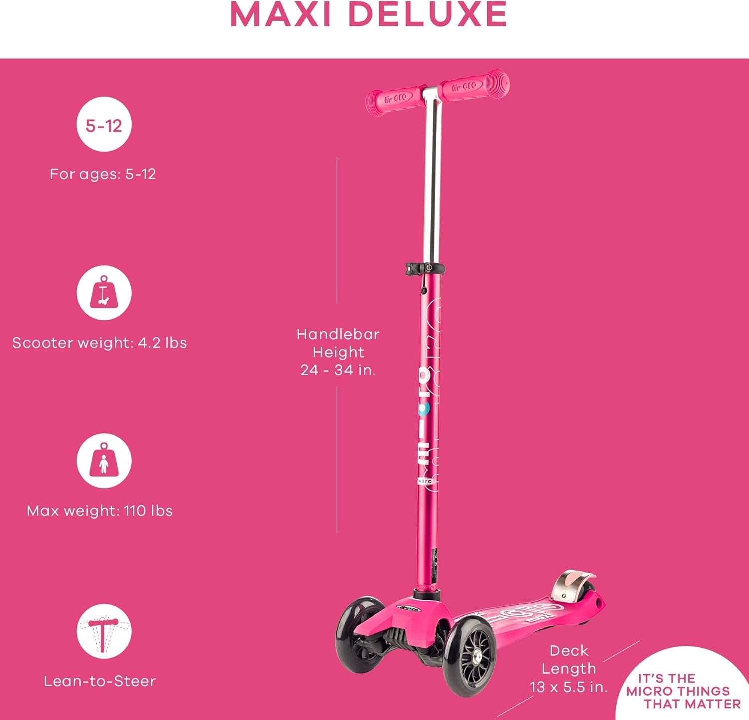 Micro Kickboard - Maxi Deluxe 3-Wheeled, Lean-to-Steer, Swiss-Designed Micro Scooter for Kids, Ages 5-12