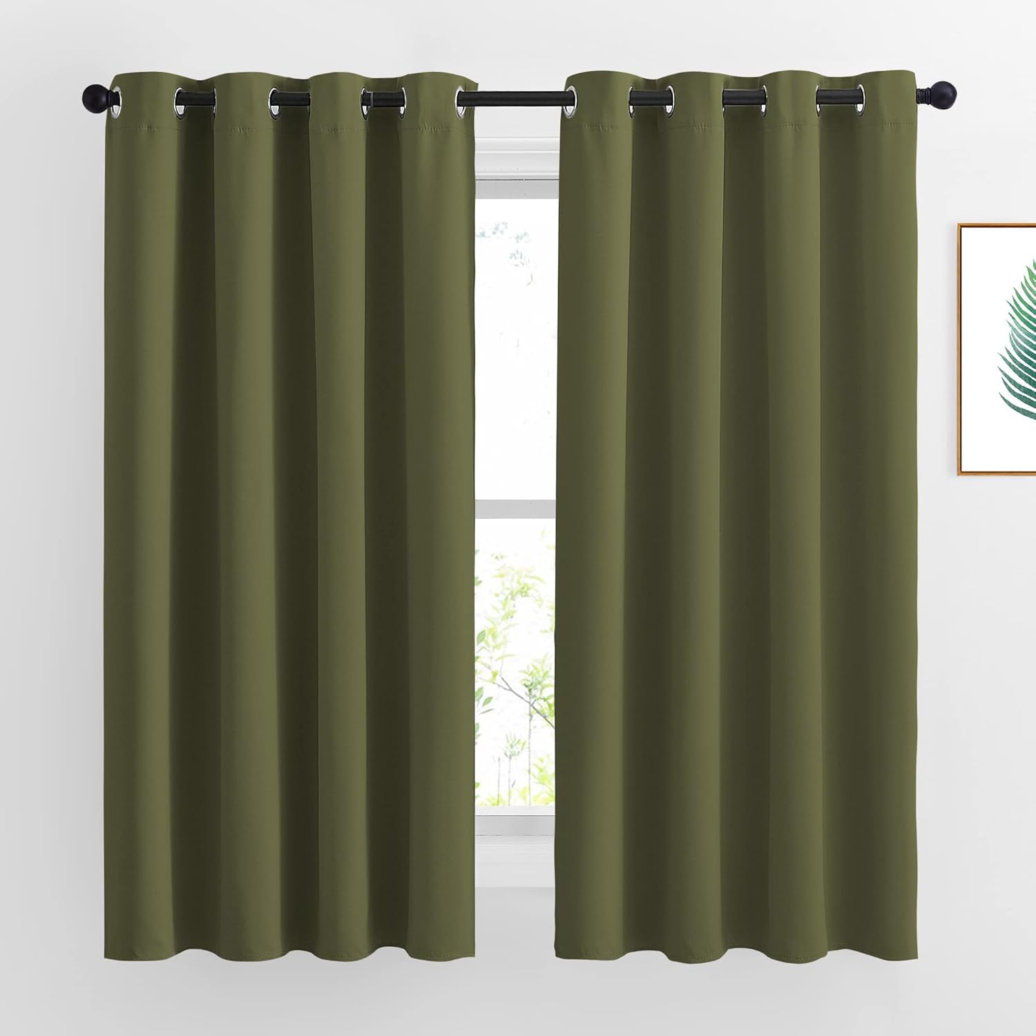 NICETOWN Blackout Olive Green Curtains 63 inches Long, Functional Blackout Window Treatments Thermal Drapes Privacy Assured for Bedroom, 2 Panels, W52 x L63