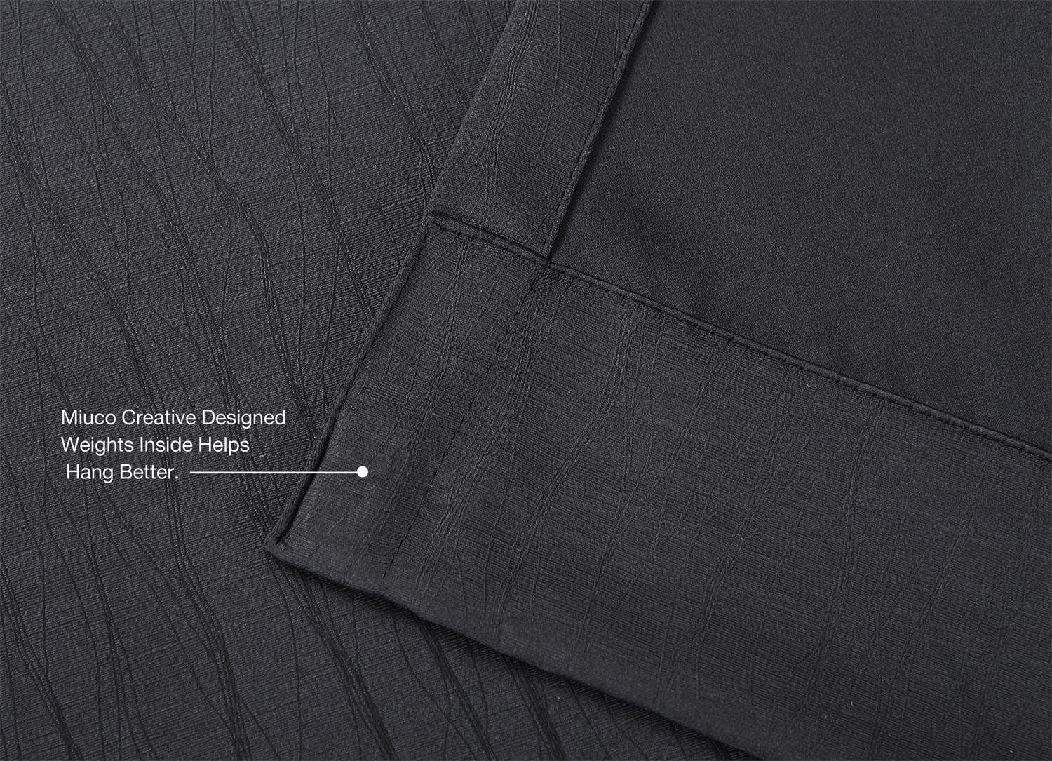 - STYLISH - Miuco blackout curtains offer a luxurious textured look and feel. Not like a bland solid color, it's stylish and functional, fit in perfect with any decor for living room, bedroom, kitchen or office.