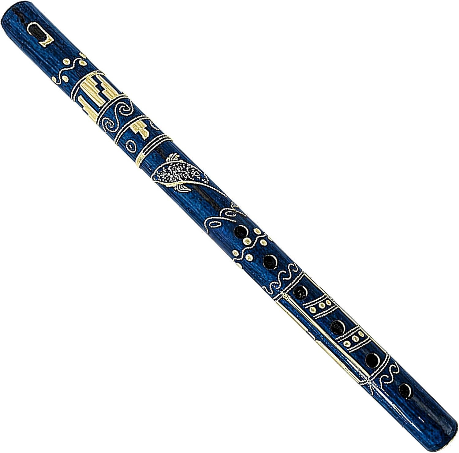 Mia Jewel Shop - Handmade Colored Bamboo Wooden Flute | Tribal Nature Pattern | Native Recorder for Beginners, Meditation & Music Lovers (Blue)