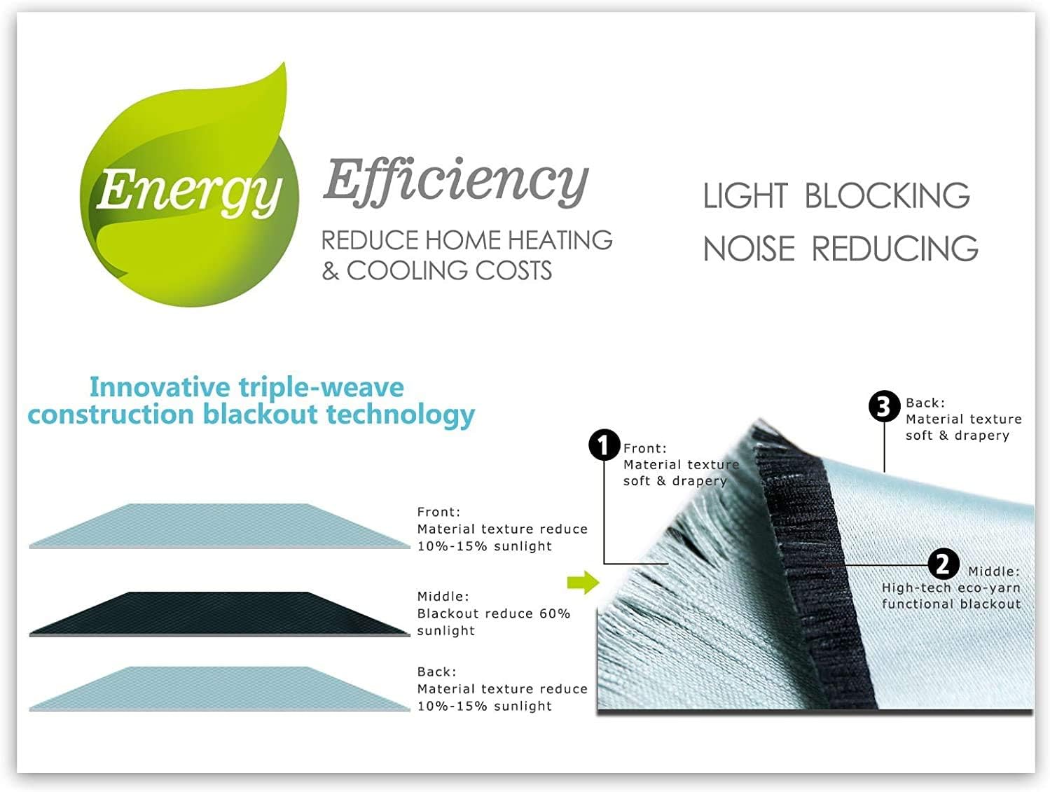- NEW BLACKOUT TECHNOLOGY - Innovative triple-weave construction helps block up to 90% Sunlight (darker colors have a better effect). Perfect for napping children, day sleepers, shift workers. Also helps reduce noise.