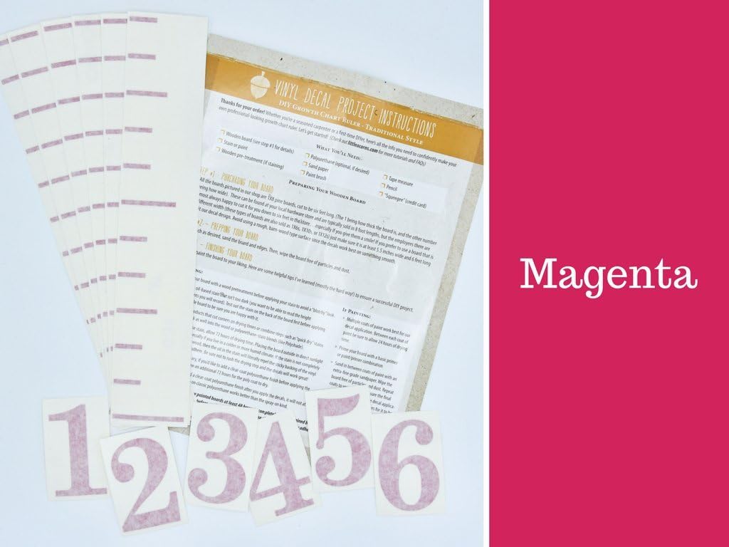 - Kit Contents: 72" of MAGENTA measuring lines, MAGENTA #s 1-6 (2.5" tall) and easy to follow instructions for the entire project