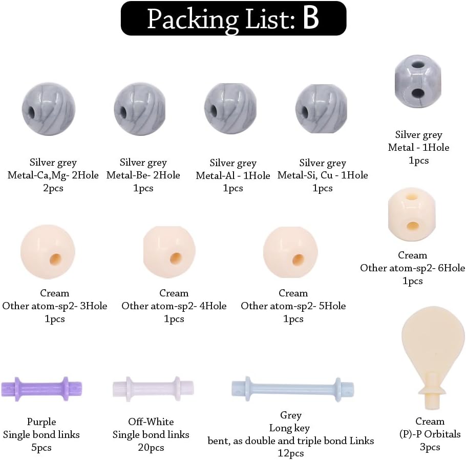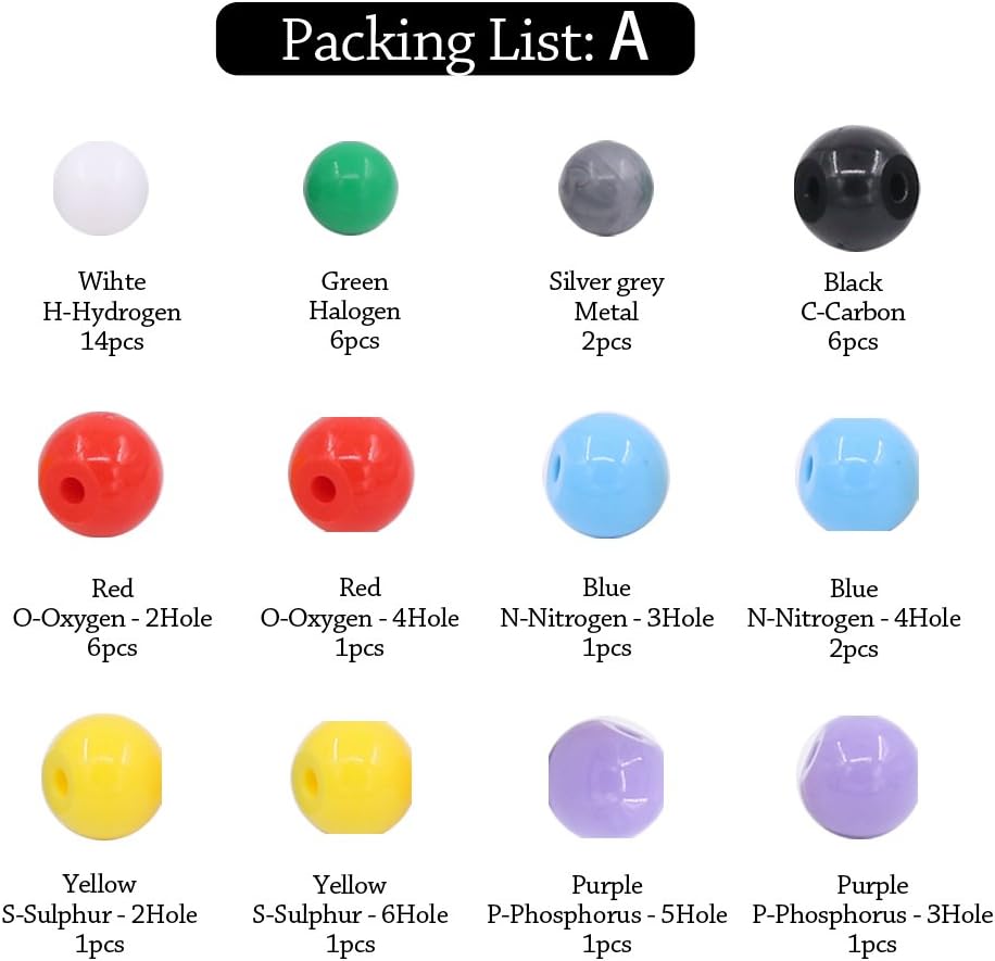 - ★ WHAT YOU GET --- Swpeet brings you this terrific 92-piece molecular model set! Each molecular model kit comes with 52 atom pieces made up of different elements. Also included are 37 links: long flexible ones (good for double and triple bonds), medium-length hard links, and two types of shorter space-filling links.