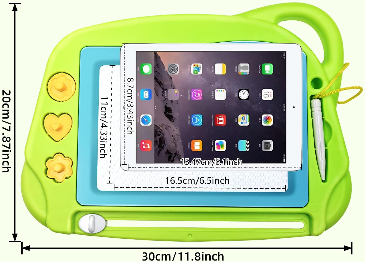 - Portable and Convenient: Frame Size 20 * 30cm / 7.87" * 11.8", Drawing Surface: 11 * 16.5cm / 4.33" * 6.5". Mini size board is small enough for Travel in Cars, easy to hold by children to take along on a trip due to its small size.