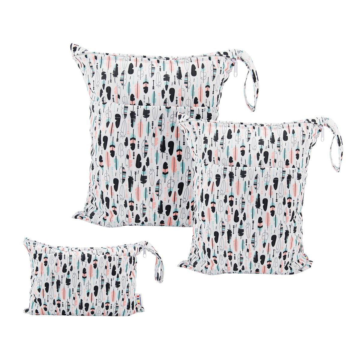 ALVABABY 3pcs Baby Cloth Diaper Wet Dry Bags Waterproof Reusable with Two Pockets Travel Beach Pool Daycare Soiled Baby Items Yoga Gym Bag for Swimsuits or Wet Clothes 3L-H1