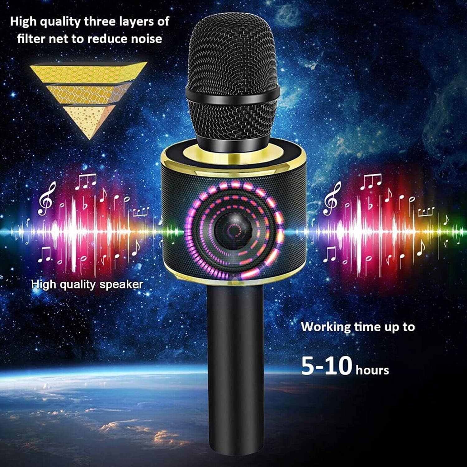 - PARTICULAR DESIGN— The excellent design of our karaoke singing microphone is very suitable for your hand, which can make you feel more comfortable. And the built-in high-quality Bluetooth module can be used as speaker, player and Recorder, compatible with various singing applications