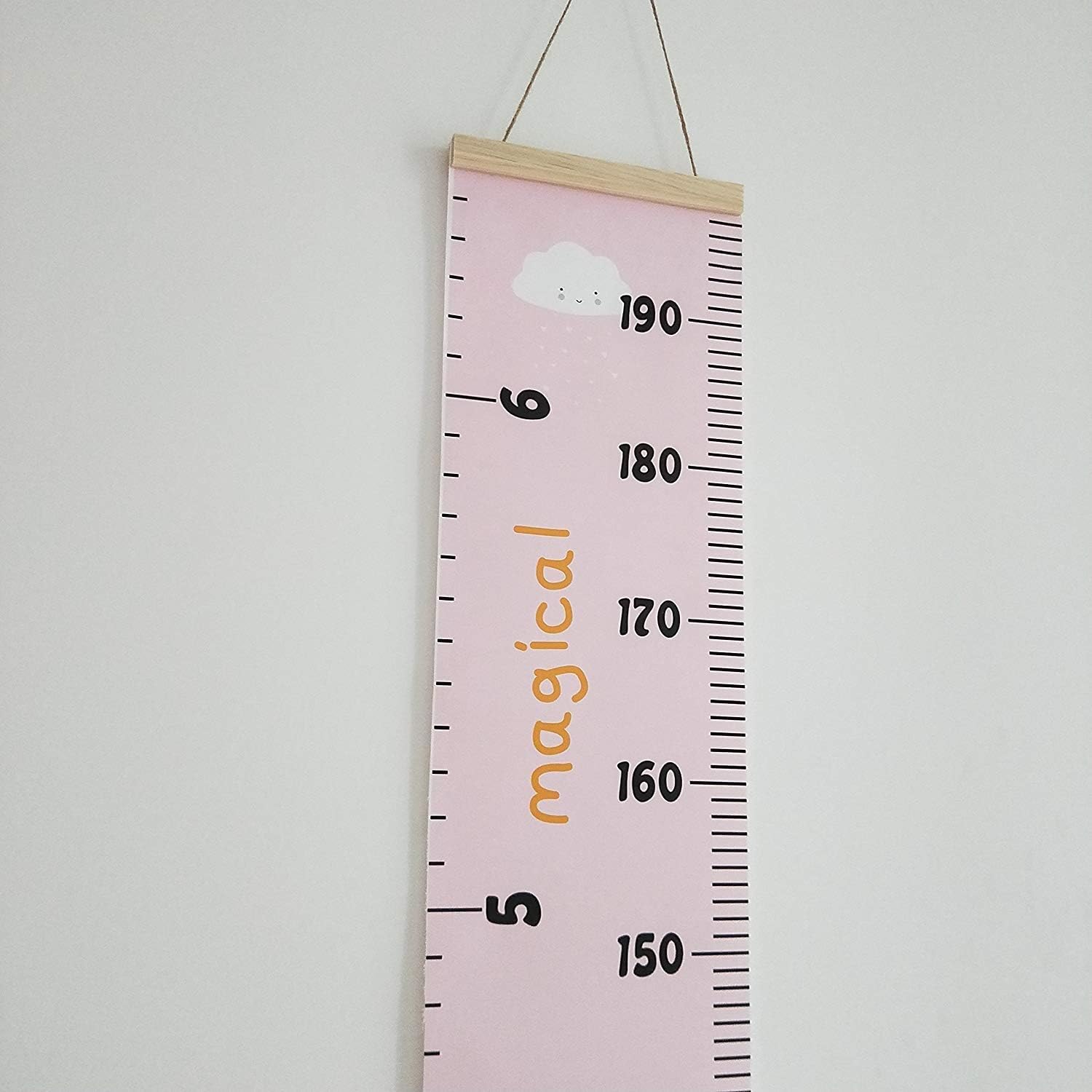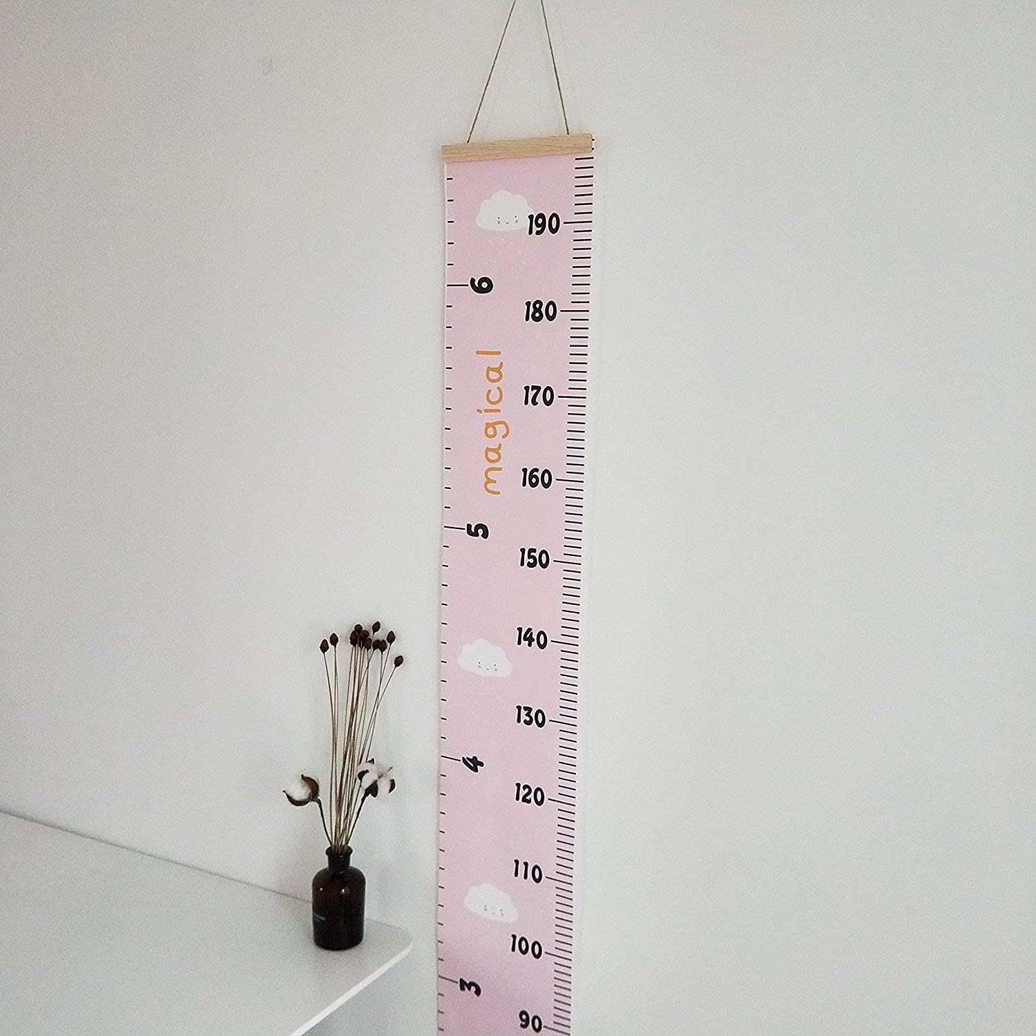 Kids Growth Chart, Wood Frame Fabric Canvas Height Measurement Ruler from Baby to Adult for Child's Room Decoration 7.9 x 79in (7.9 x 79in, Pink - Cloud)