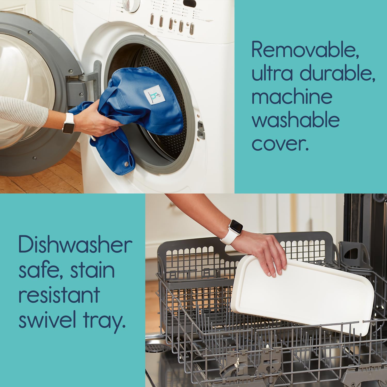 - MACHINE WASHABLE COVER | We all know that babies are messy eaters! Our portable booster seat is designed to effortlessly wipe clean, allowing more quality time with your precious tot. To assist with the inevitable mess, the fabric cover slides off the frame for machine washing - a must have for sanitizing and spaghetti stain removal.