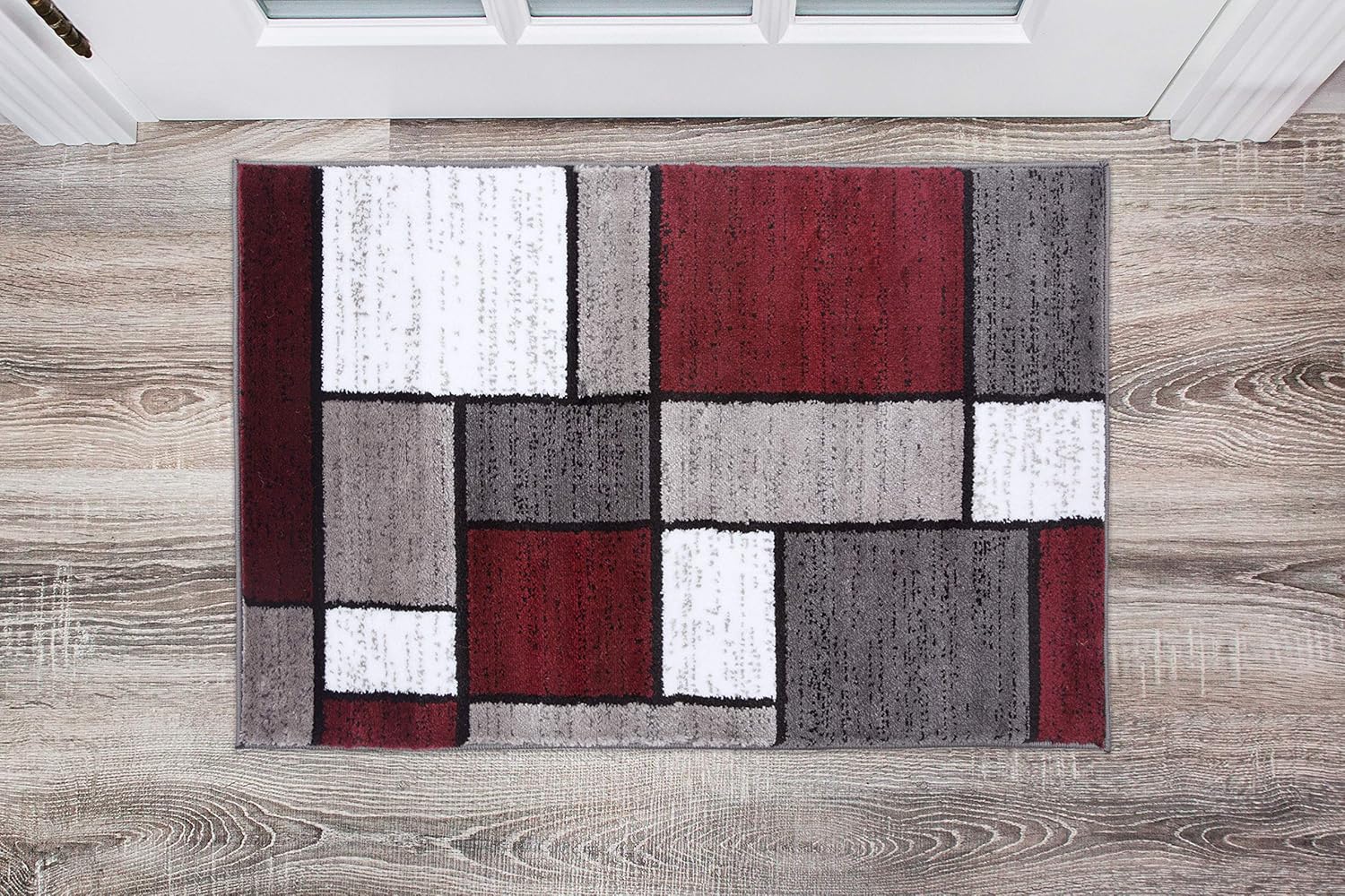 Rugshop Contemporary Modern Boxes Area Rug 2' x 3' Red