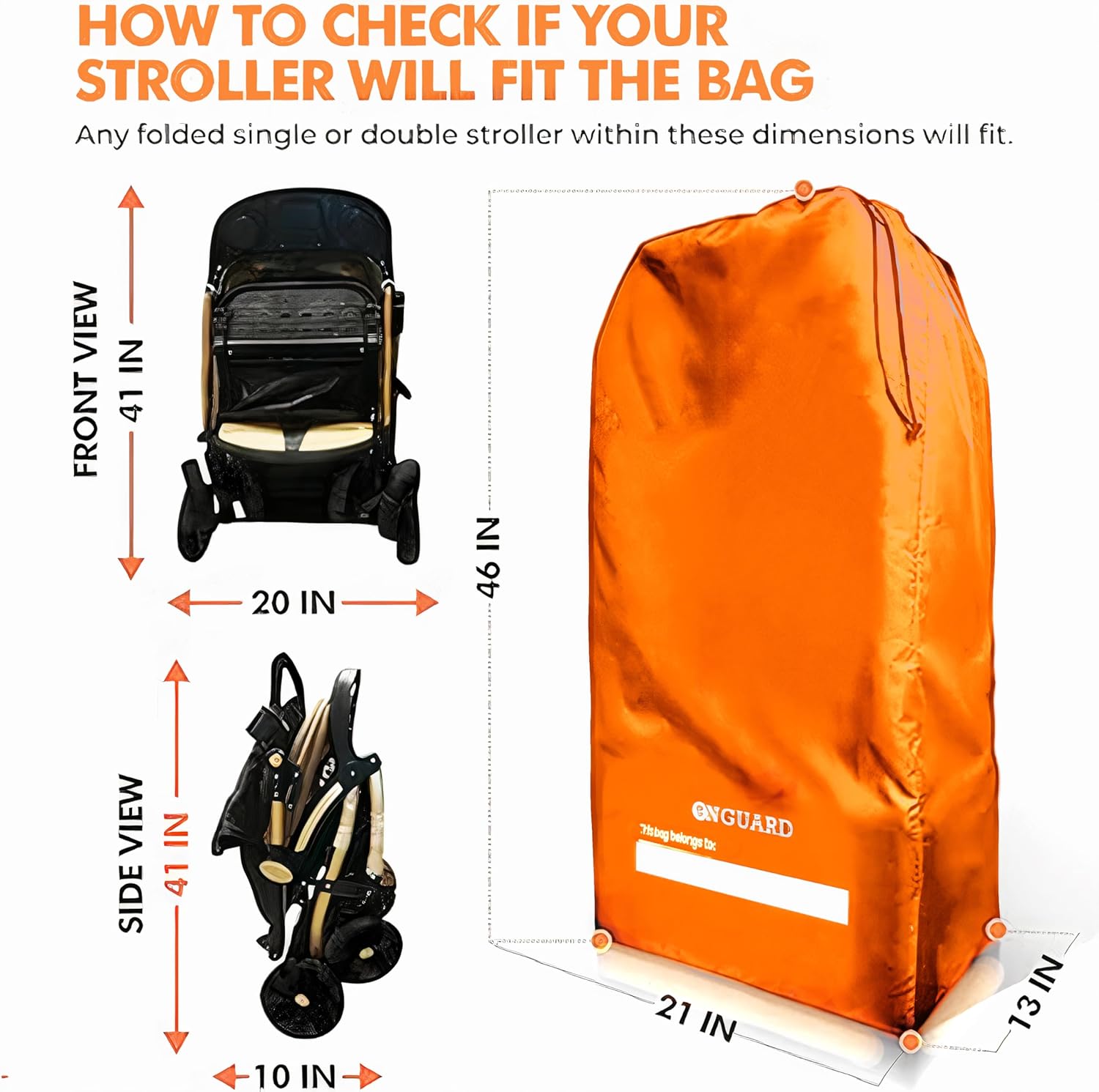 ONGUARD Waterproof Single and Double Stroller Bag for Airplane - Travel Stroller Cover for Air Travel and Storage - Gate Check Bag Backpack- Baby Airplane Essentials - Orange