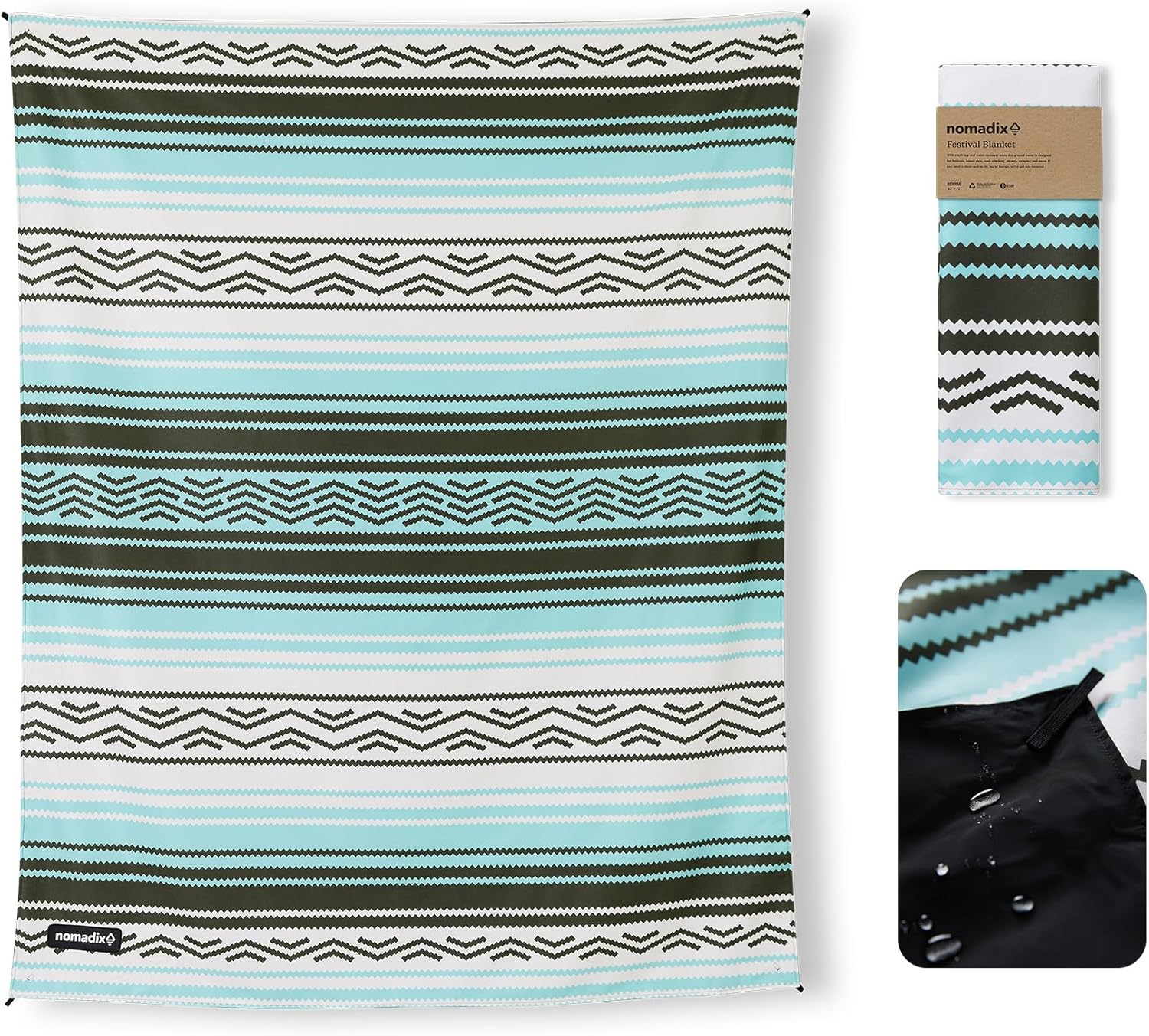 Nomadix Festival Blanket - Perfect for Picnics, Camping, & Lawn Seating - Plush Top & Water Resistant Base - Made with Post Consumer Recycled Materials - Agua Blue - 60x70 in