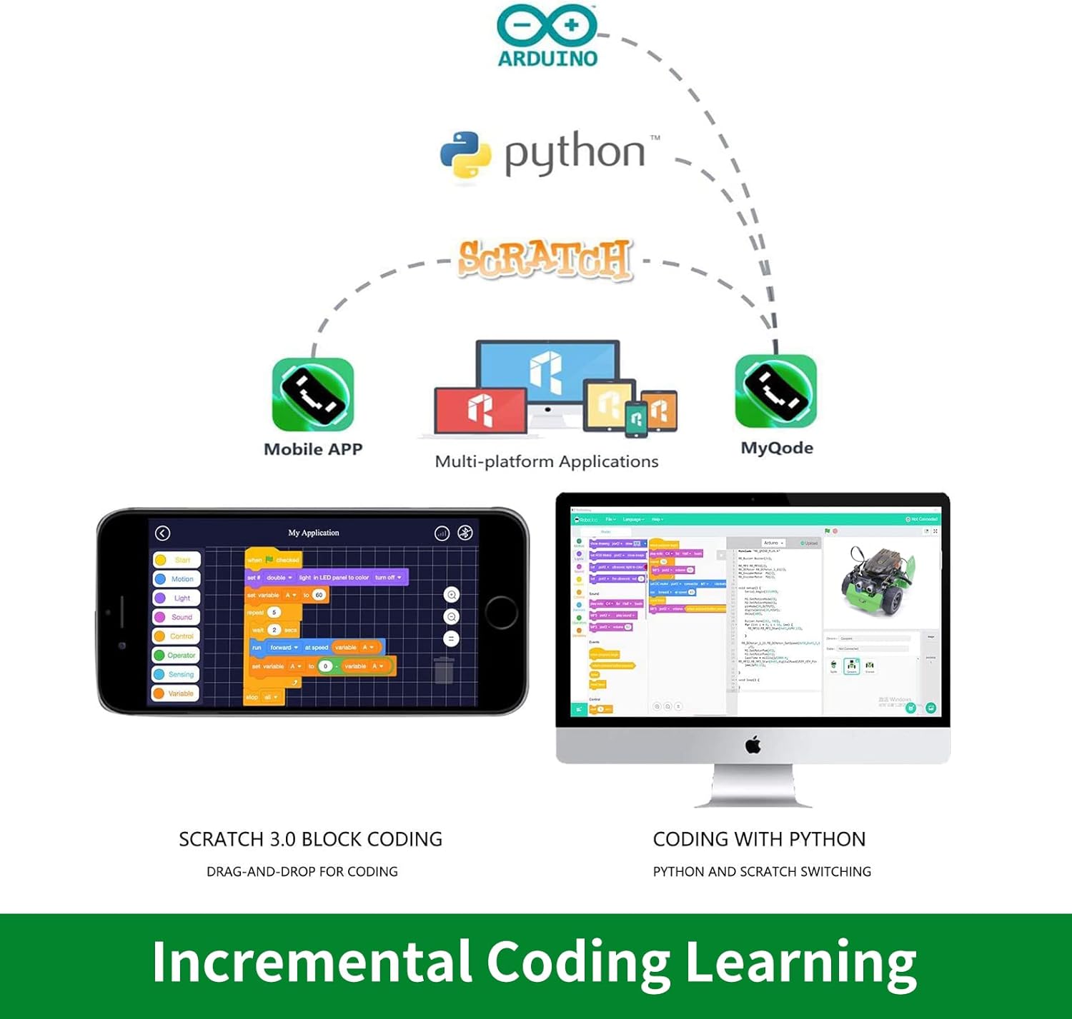 - STEM Educational Robotics: Q-scout helps children learn programming in a step-by-step manner, taking them from simple and fun drag-and-drop programming with Scratch graphics to advanced programming with Arduino and Python. It allows children to learn coding, electronics and robotics through building and playing while improving their logical thinking, hands-on skills, creativity and other abilities.