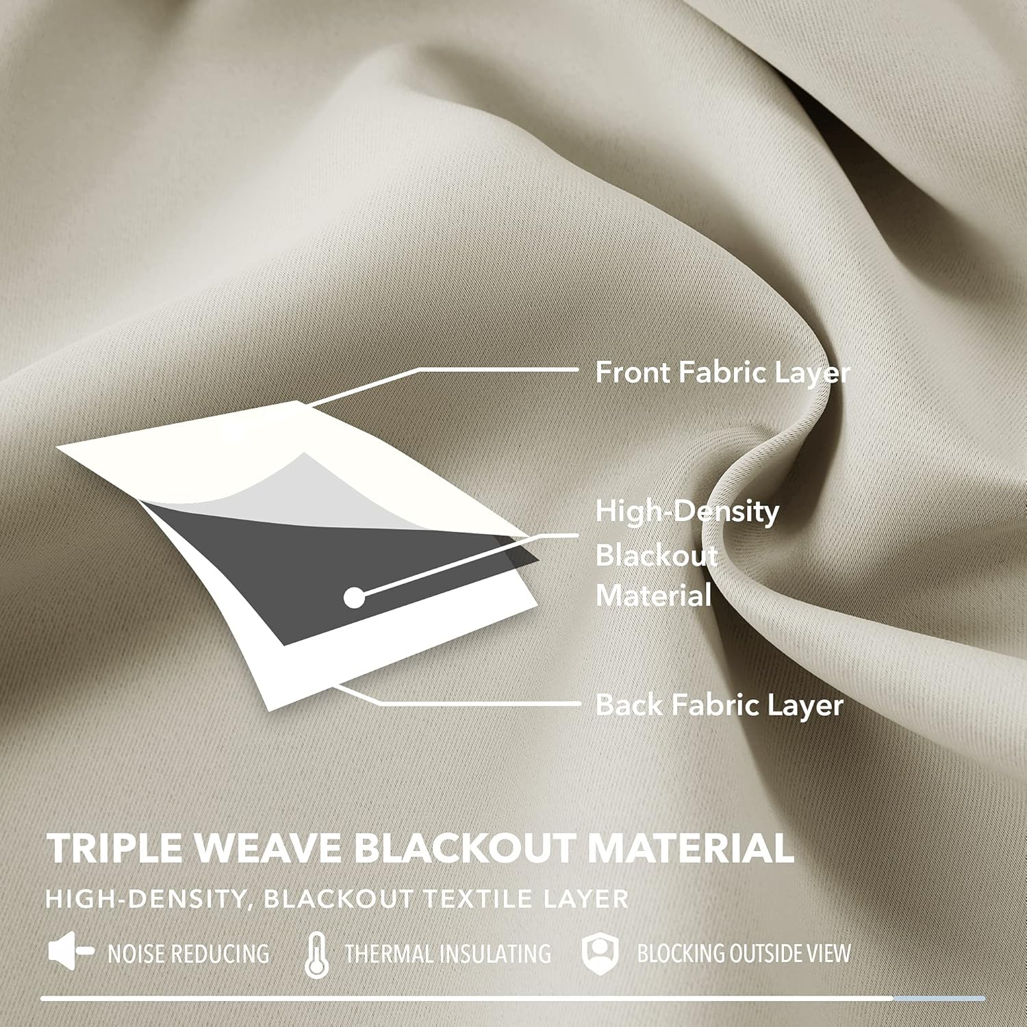 Deconovo Blackout Curtains, Room Darkening Thermal Insulated Window Drapes, Noise Reducing, Grommet Top, 2 Panels 38W x 72L Inch Machine Washable for Bedroom Living Room Nursery Light Beige