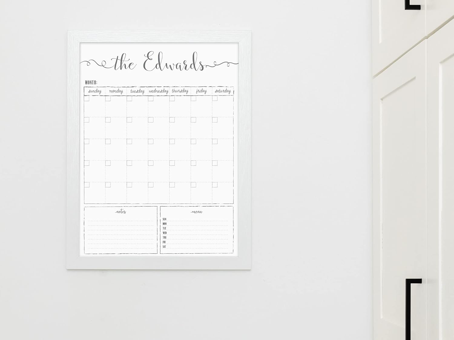 Customized Dry Erase Whiteboard Framed Calendar, Wet Erase or Dry Erase calendar for wall, 18x24 or 24x36 Wall Calendar, Monthly Calendar, Family Name Calendar