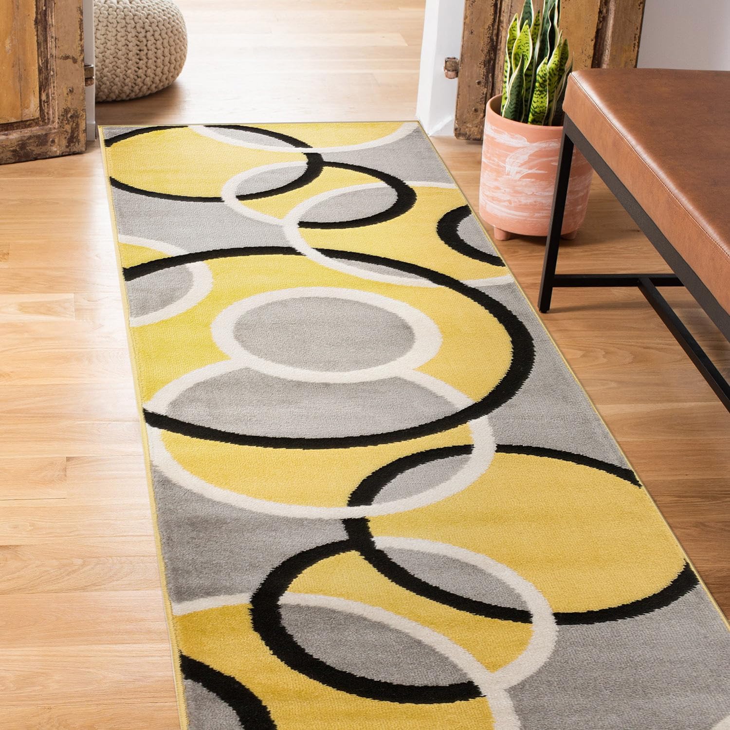 Rugshop Contemporary Abstract Circles Easy Maintenance for Home Office,Living Room,Bedroom,Kitchen Soft Runner Rug 2' x 7' 2" Yellow