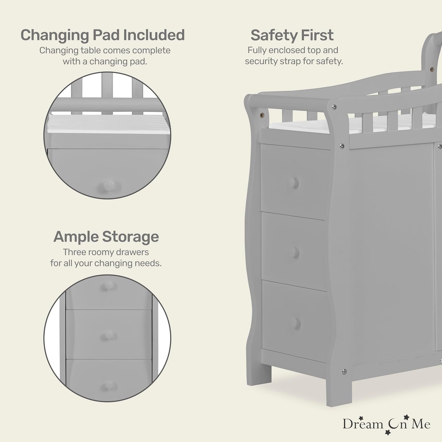 Dream On Me Casco 3-in-1 Mini Convertible Baby Crib & Changer with Storage, Pebble Grey, Pinewood, GreenGuard Gold & JPMA, 1” Mattress Pad, 3 Mattress Heights, Converts to Mini Day & Twin-Size Bed