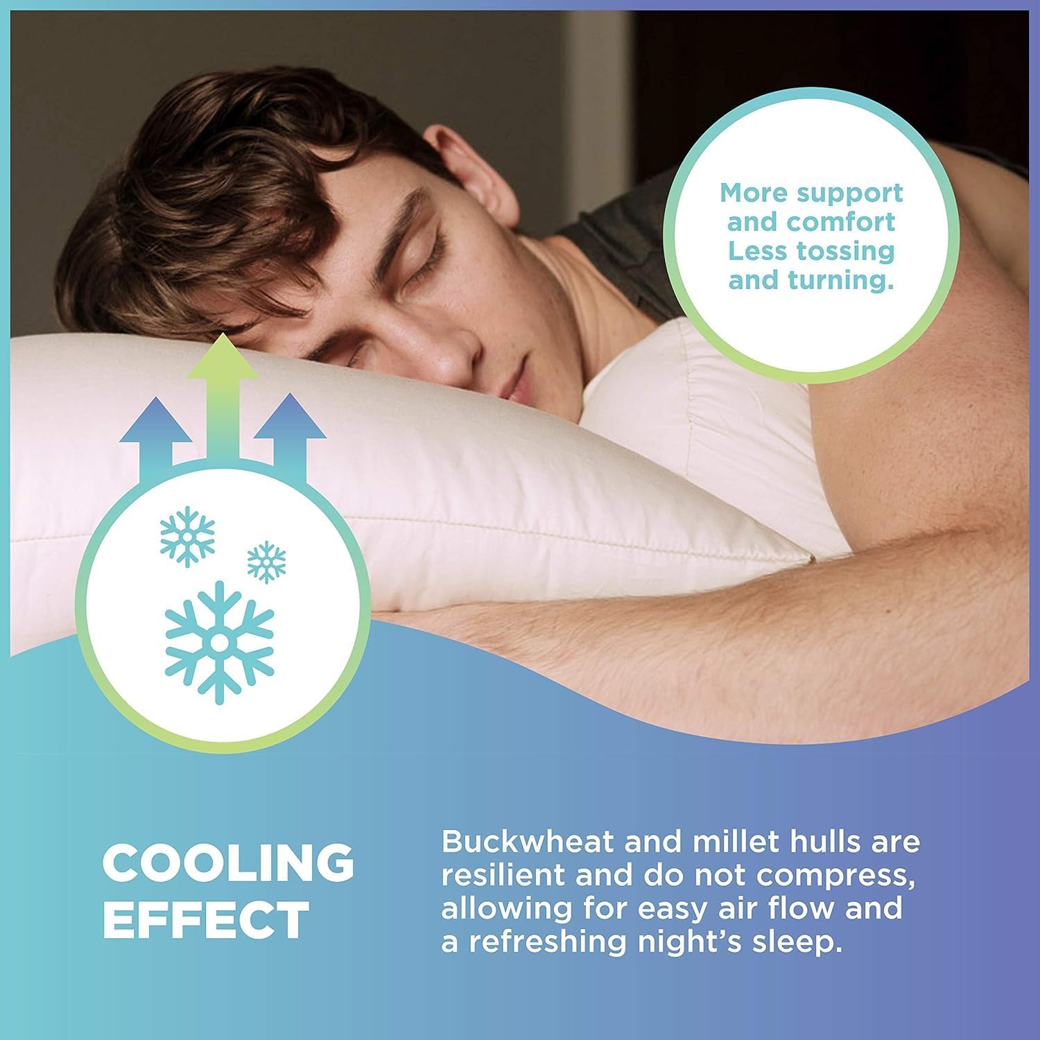 - ππππππππππππππ & ππππππππππ: Crafted with natural millet hulls, this organic cotton fabric pillow is free from common allergens and harsh chemicals, making it a safe and gentle option for sensitive sleepers. The breathable fill encourages steady airflow throughout the night, helping to regulate temperature and keep you cool, dry and comfortably supported as you rest.