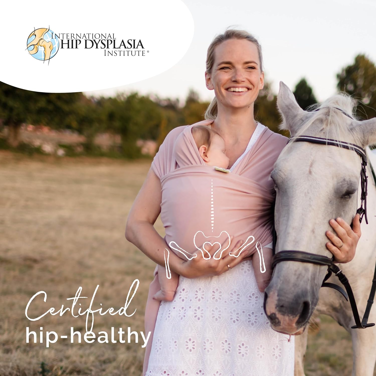 - Certified “Hip-Healthy” by the International Hip Dysplasia Institute: This infant carrier wrap helps keep baby in a natural, ergonomic position while evenly distributing weight—relieving pressure from your back and shoulders.