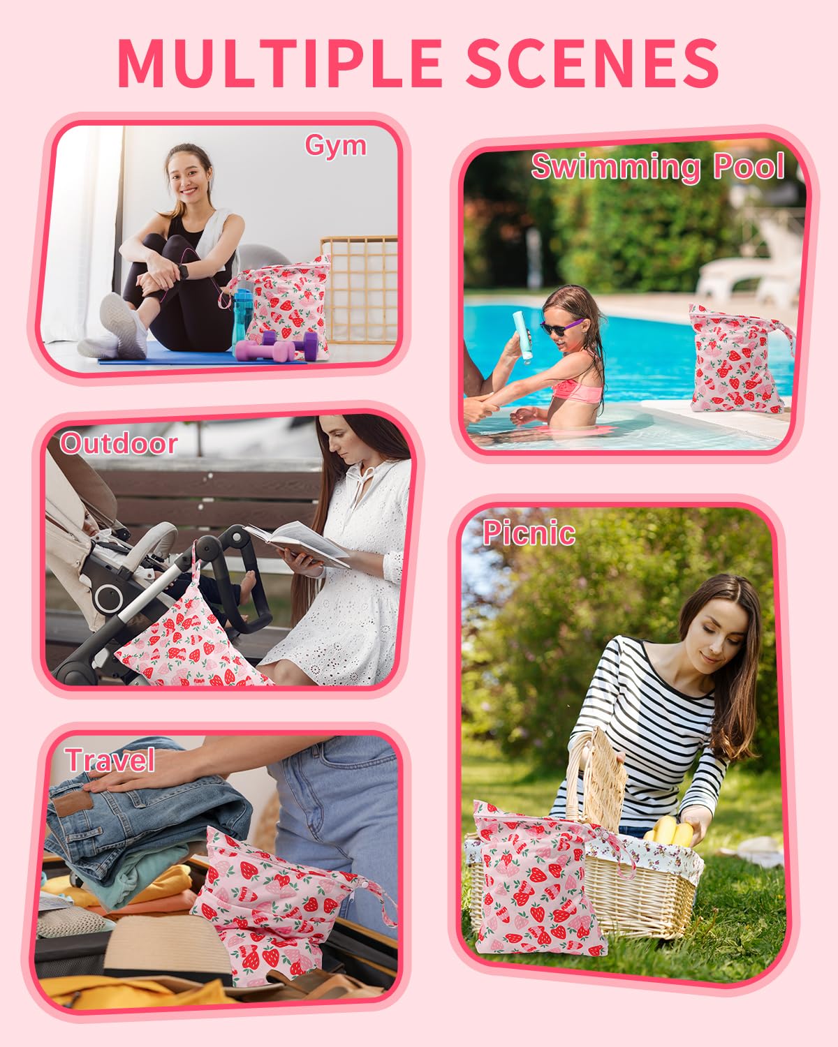 - Double-Pocket Design with Snap Handle: Each wet bag contains two pockets, which comes with two zip closures to ensure that nothing will drop out of the bag and better to keep the clean and dirty items separately. With the snap handle design, you can unbutton the haddle and easily hang the bag on the stroller or door knobs, towel rod ect. anywhere you want.