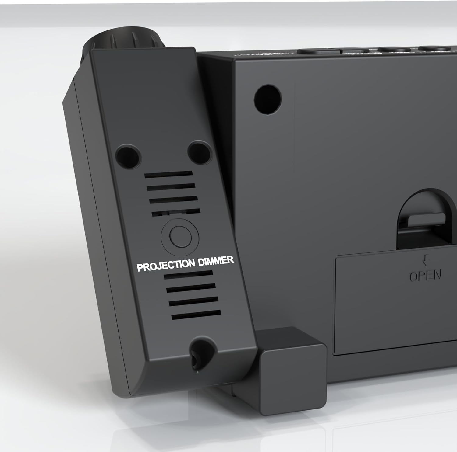- ⭐【𝗨𝗦𝗕 𝗖𝗵𝗮𝗿𝗴𝗲𝗿 & 𝗕𝗮𝘁𝘁𝗲𝗿𝘆 𝗕𝗮𝗰𝗸𝘂𝗽】USB charging port is compatible with all Android & IOS smart-phones, tablets, Kindle or any other digital devices. The 𝗱𝗶𝗴𝗶𝘁𝗮𝗹 𝗽𝗿𝗼𝗷𝗲𝗰𝘁𝗼𝗿 𝗰𝗹𝗼𝗰𝗸 is outlet powered for supporting functions such as 𝗨𝗦𝗕 𝗰𝗵𝗮𝗿𝗴𝗶𝗻𝗴, 𝗽𝗿𝗼𝗷𝗲𝗰𝘁𝗶𝗼𝗻,alarm and time display. 2 AAA 1.5V batteries(not included) are required to ensure memorization of time settings so that you don't need to reset time after encountering power outage.
