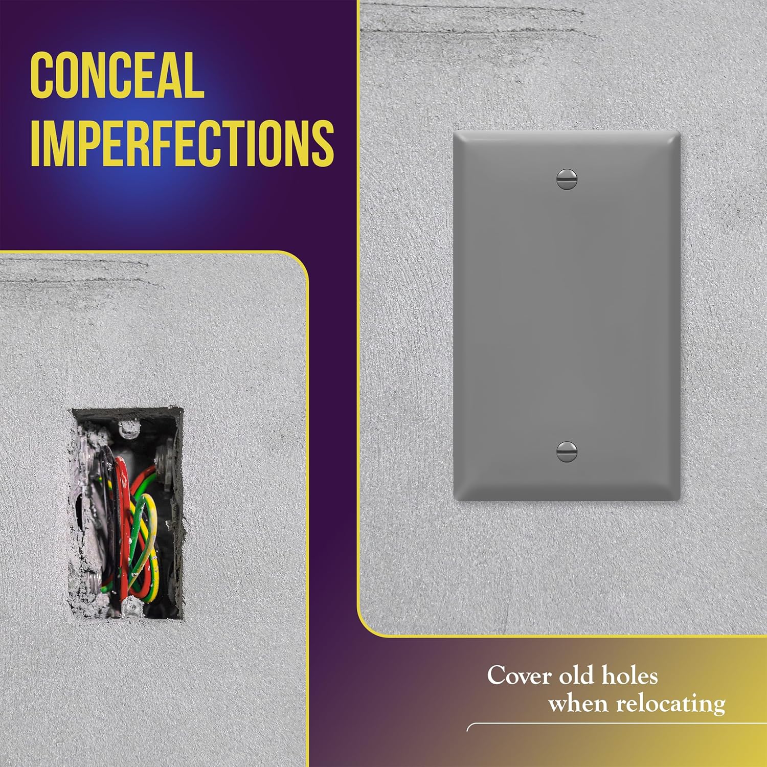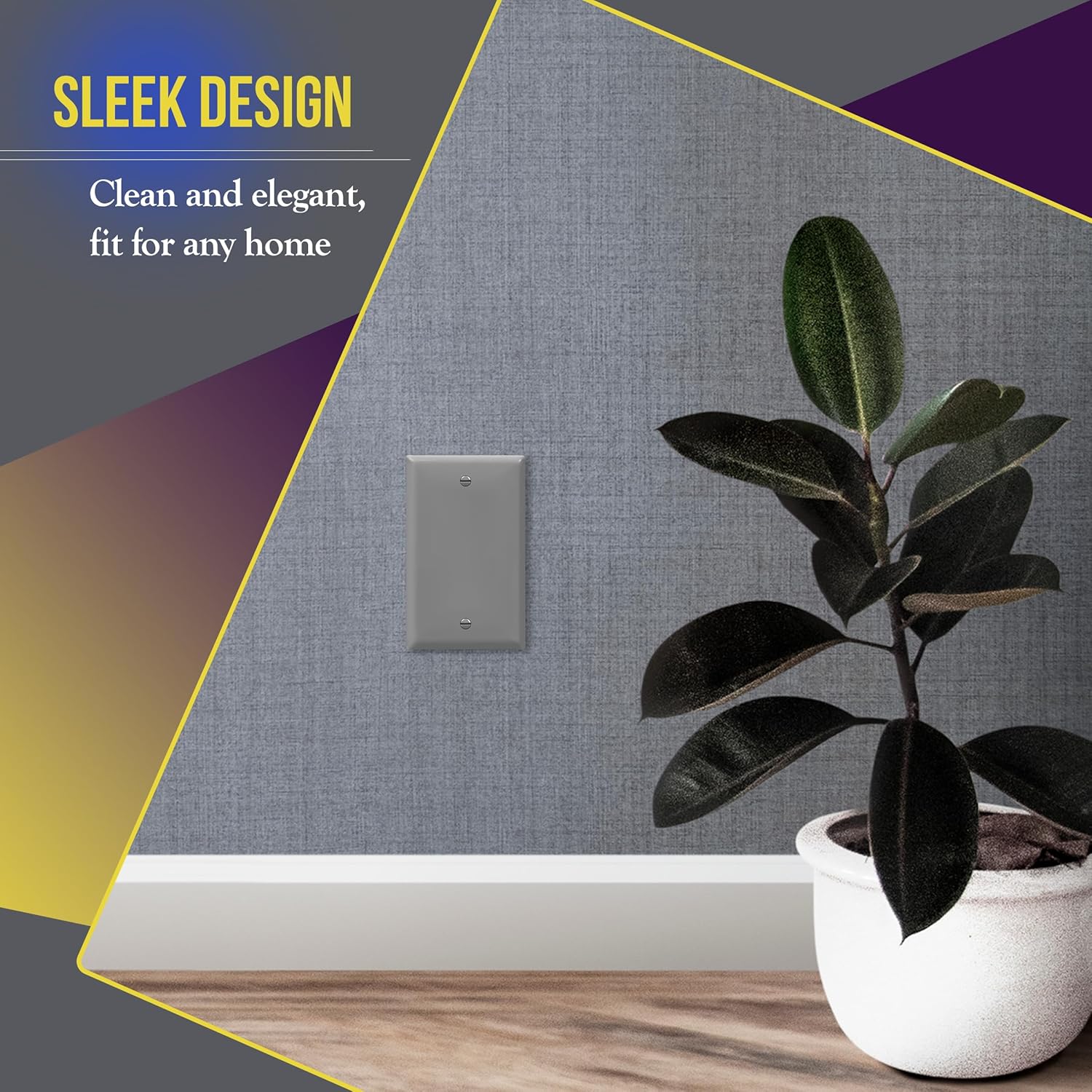 ENERLITES 8801-GR Blank Cover Wall Plate, Size 1-Gang 4.50" x 2.76", Polycarbonate Thermoplastic, 8801-GY, Gray, Screw