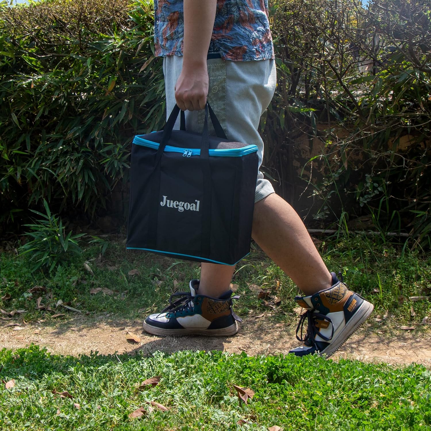 - The thick black canvas carrying bag lets you take the tumble tower blocks with you, durable handles make transporting the tower easy.
