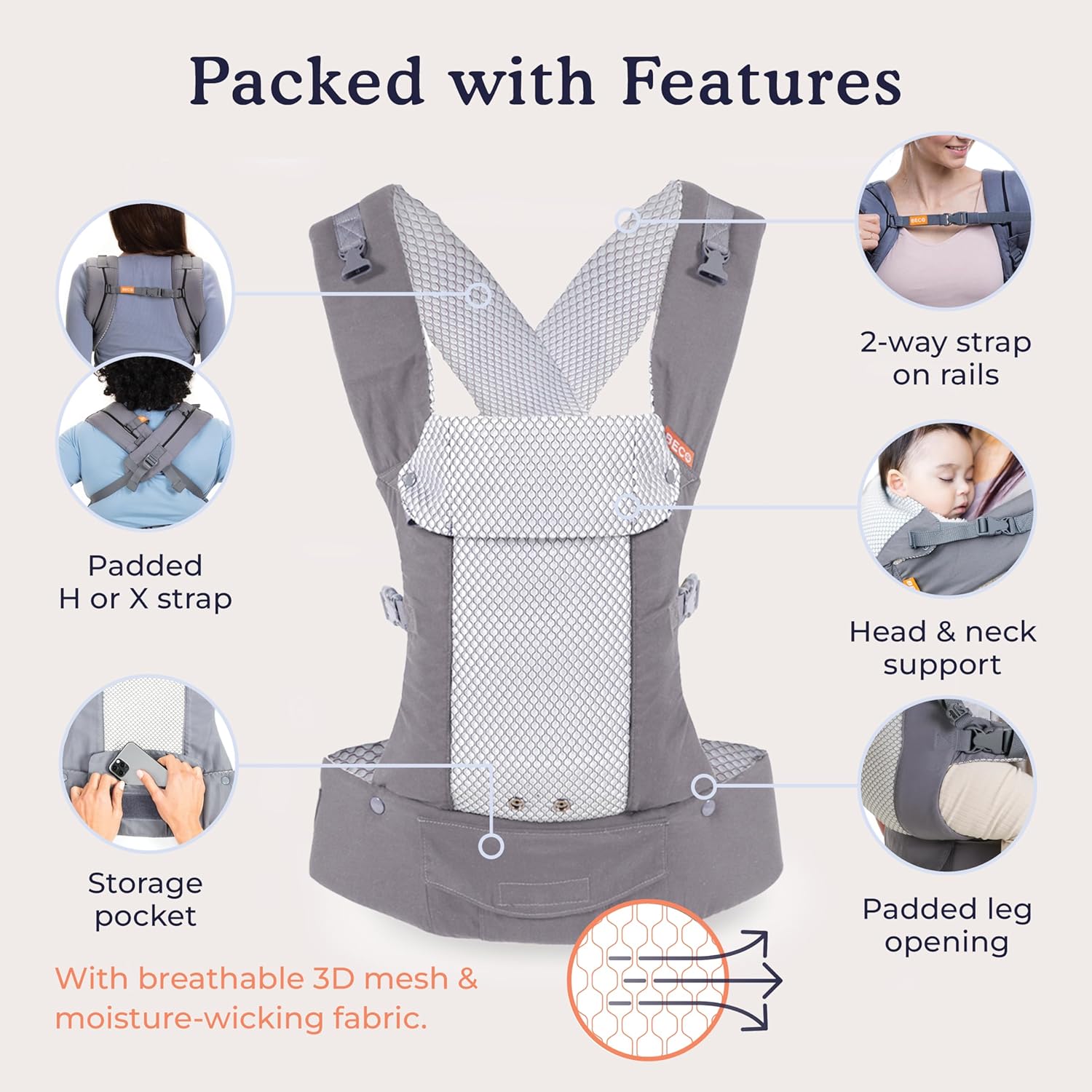 Beco Gemini Baby Carrier from Newborn to Toddler - Certified Ergonomic Newborn Baby Carrier for Infants and Children of 7-35 lbs - M Shape, Adjustable Seat, Breathable 3D Mesh (Cool Dark Grey)