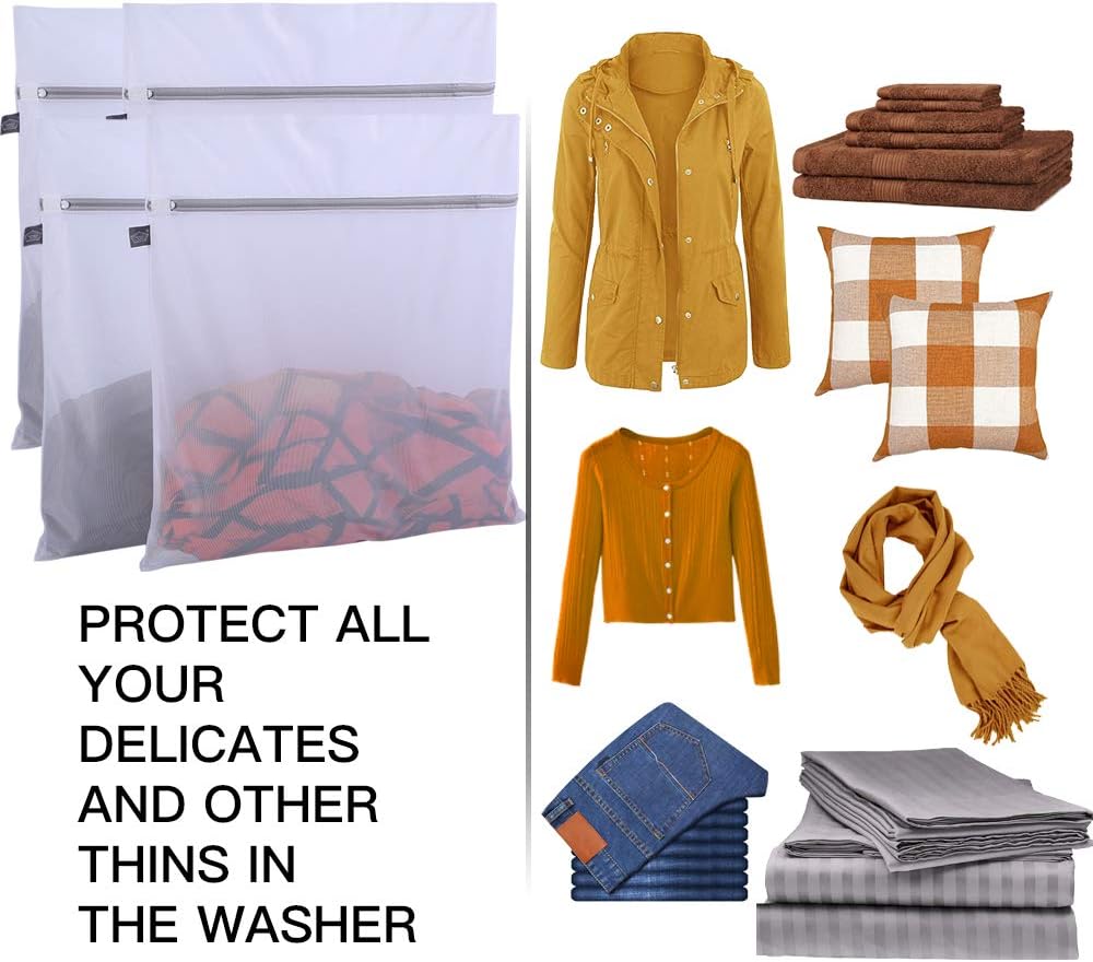 - 【Come in 4 Pieces】XXL Size(24 x 24 inch), perfect for washing coats, heavy clothing, bedding, linens, pillowcases, bed sheets, duvet covers, tablecloths, mattress covers, long dersses, plush toys