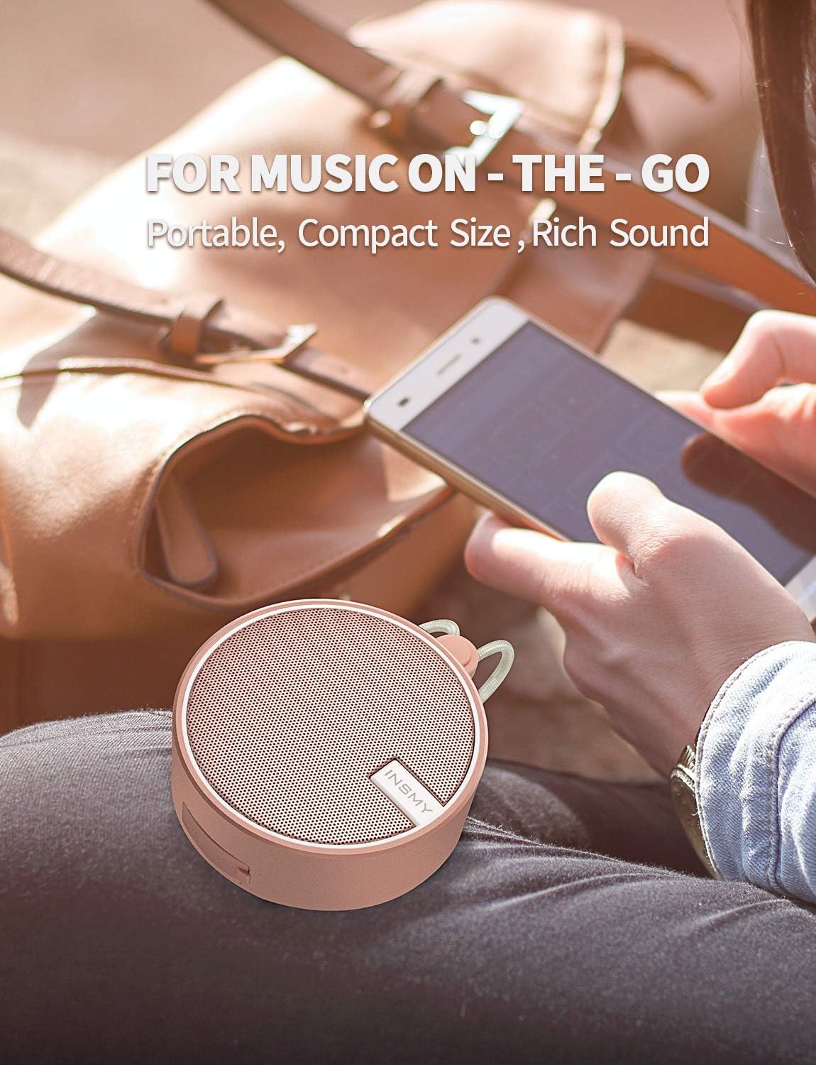 INSMY C12 IPX7 Waterproof Shower Bluetooth Speaker, Portable Small Speaker, Speakers Bluetooth Wireless Loud Clear Sound Support TF Card Suction Cup for Outdoor Kayak Canoe Beach Gift (Cashmere Pink)