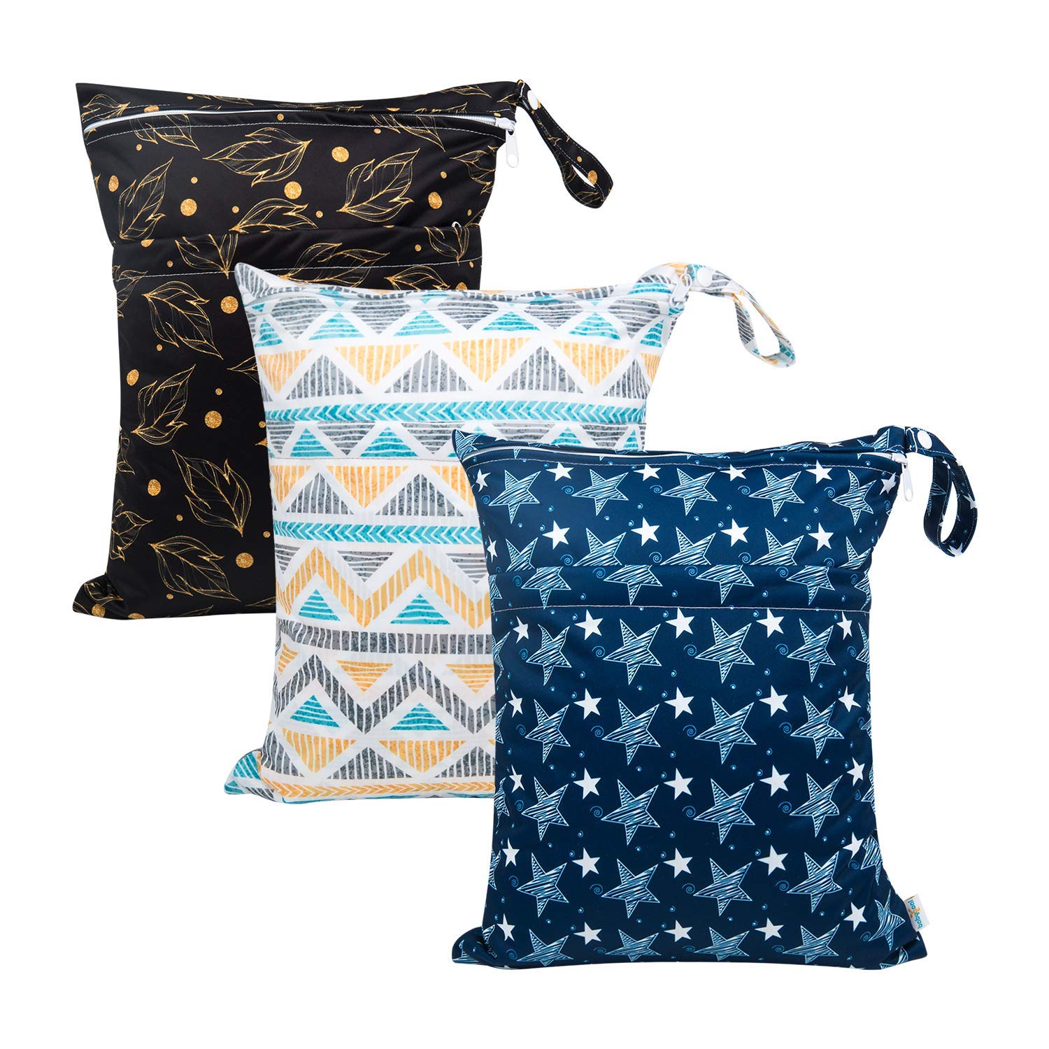 babygoal Wet Dry Bags for Baby Cloth Diapers, Washable Travel Bags, Beach, Pool, Gym Bag for Swimsuits & Wet Clothes with Two Zippered Pockets 3 Pack,3LN06