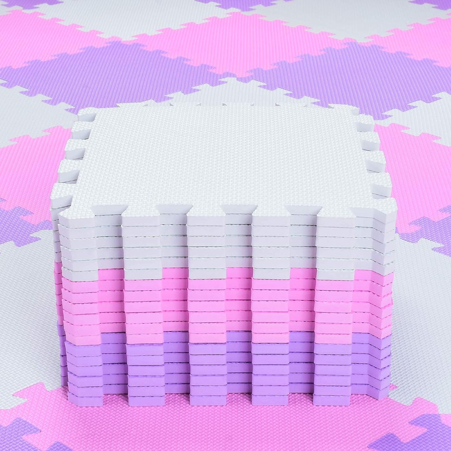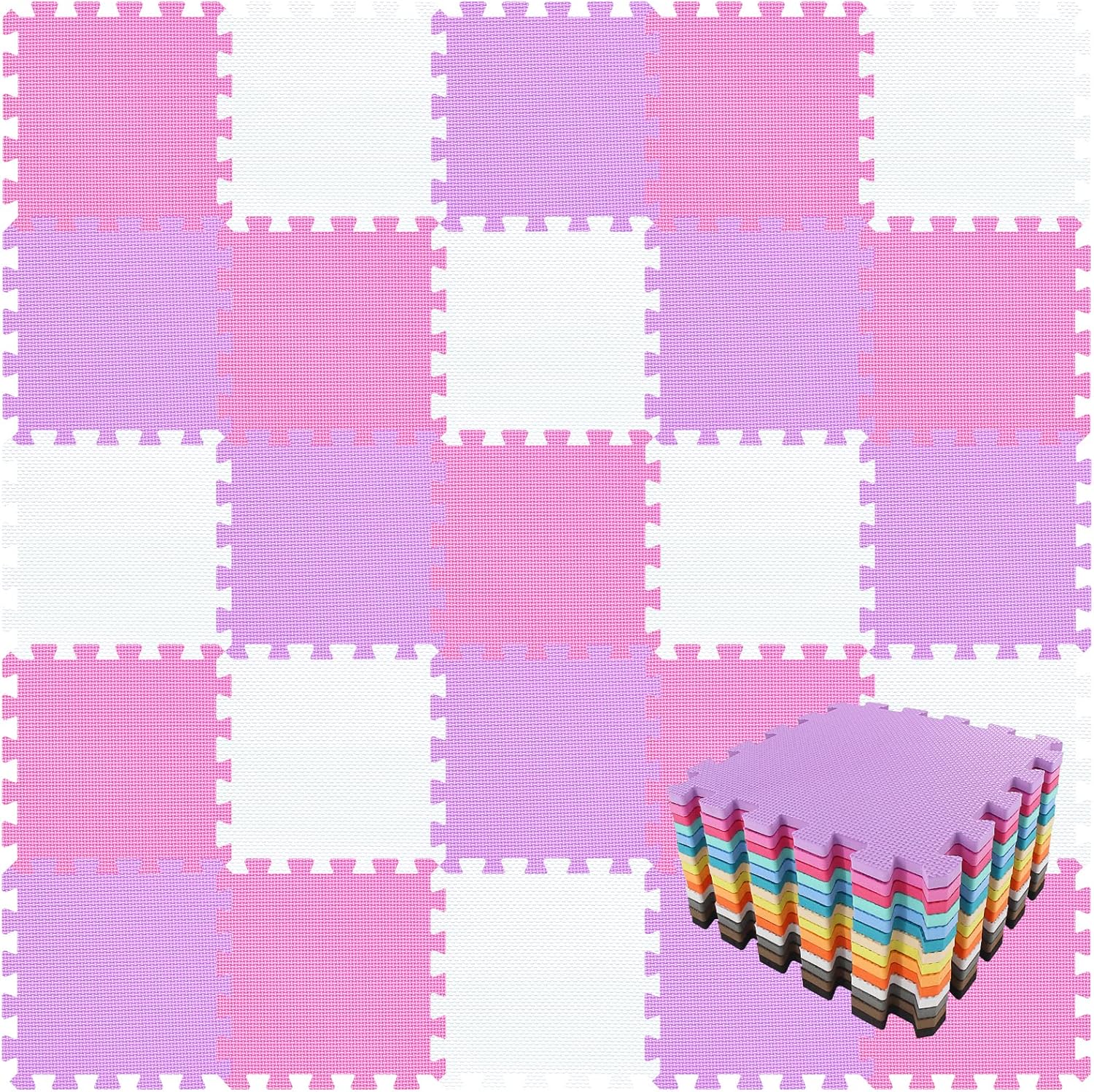qqpp EVA Rubber 18 Tiles Interlocking Puzzle Foam Floor Mats - Baby Play Mat for Playing | Exercise Mat for Home Workout. White, Pink, Purple. QC-ACKb18N