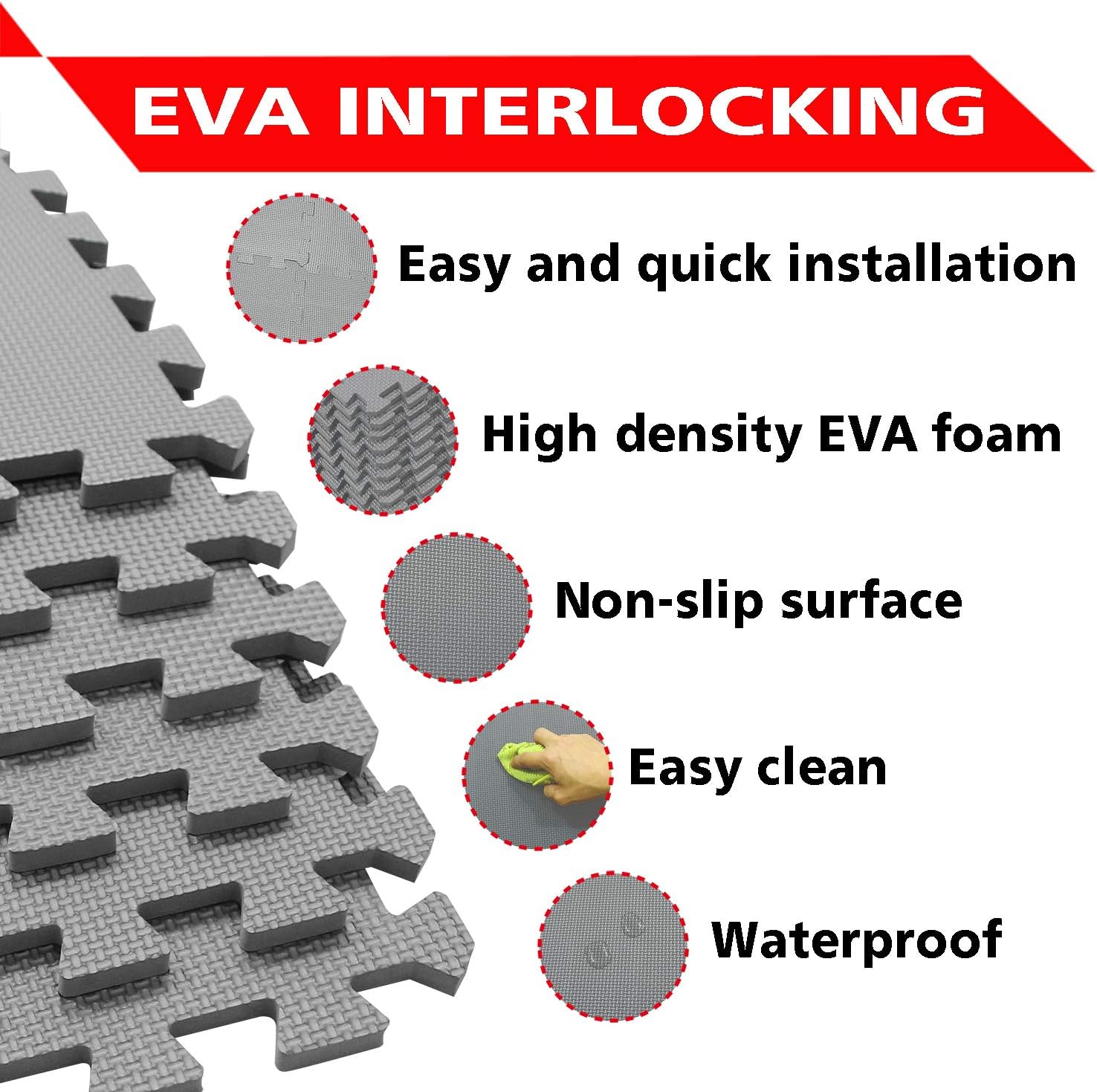 - Cover area: 86CM x 170CM( ±1CM) / approx. 1.46 SQ. M,one sets 18pcs,(300mm x 300mm x 10mm). Package includes 9 WHITE and 9GRAY interlocking foam tiles, making it a perfect workout and training accessory.