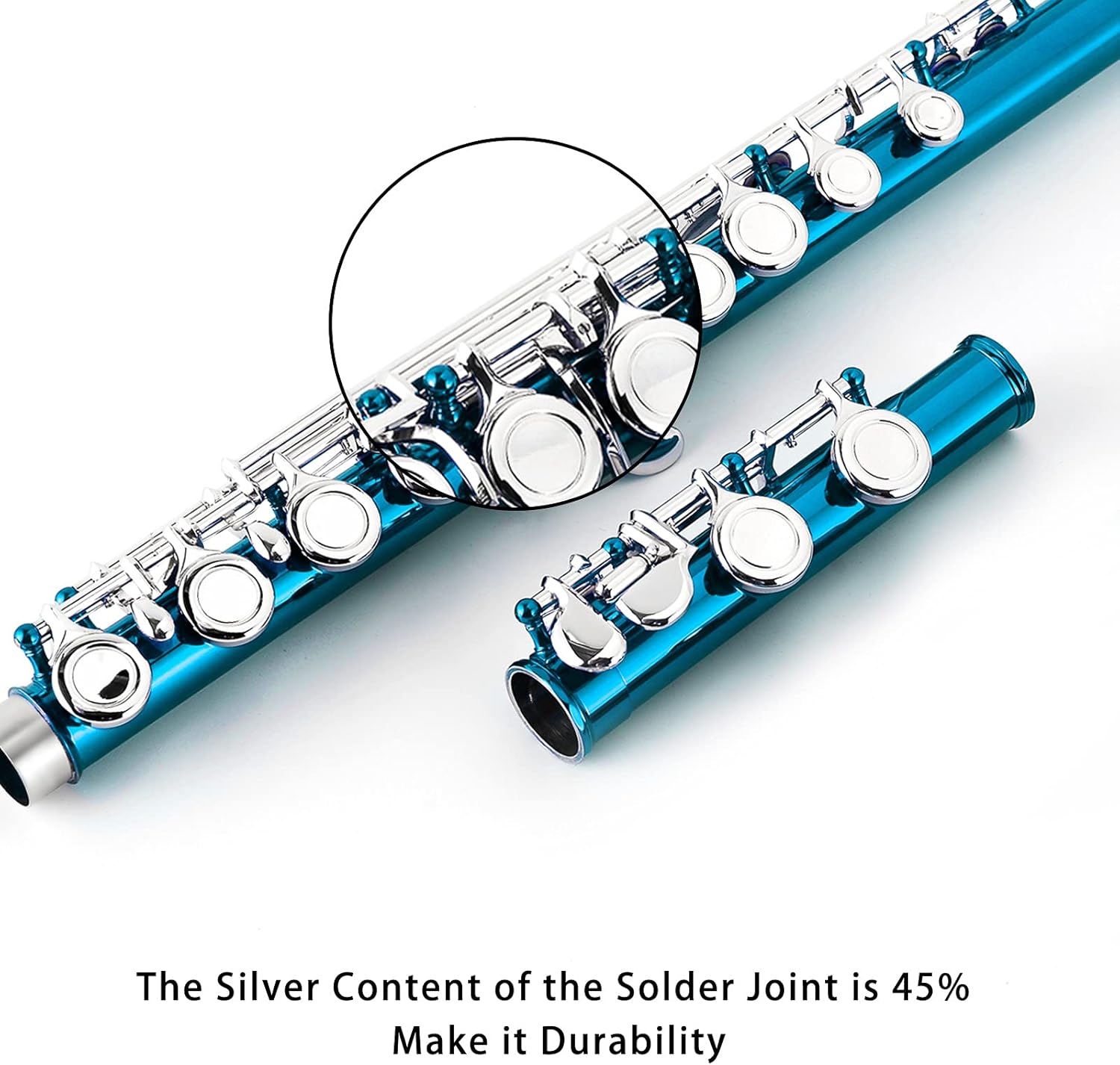 EastRock Closed Hole Flutes C 16 Key for Beginner, Kids, Student -Nickel Flute with Case Stand and Cleaning kit (Sea Blue)