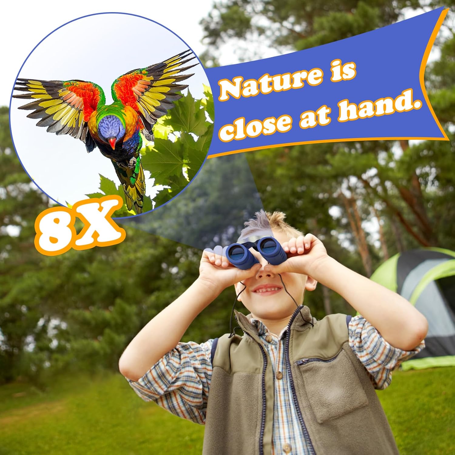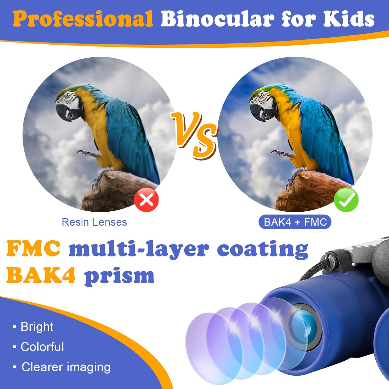 • ☆Crystal Clear View: Superb high-resolution maginifcation of 8X with the 7.2°viewing angle, your child can see the entire visual wide field for capturing objects easily. The BAK 4 FMC prism green multi-layer broadband coated can control optical reflection to create crisp and colorful images.