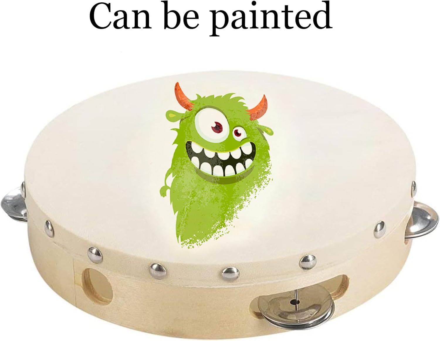 Tosnail 2 Pack 8" Wood Handheld Tambourine - Single Row 5 Pairs Jingles