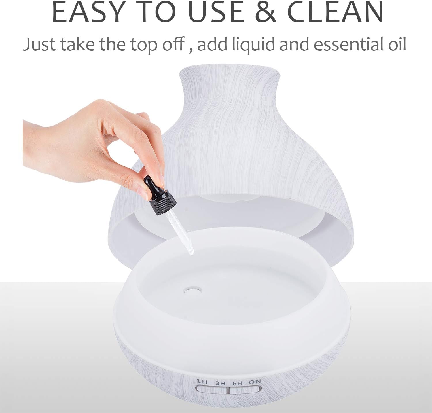 BZseed Aromatherapy Essential Oil Diffuser 550ml 12 Hours White Wood Grain Aroma Diffuser with Timer for Large Room, Home, Baby Bedroom, Waterless Auto Shut-Off, 7 Colors Lights Changing