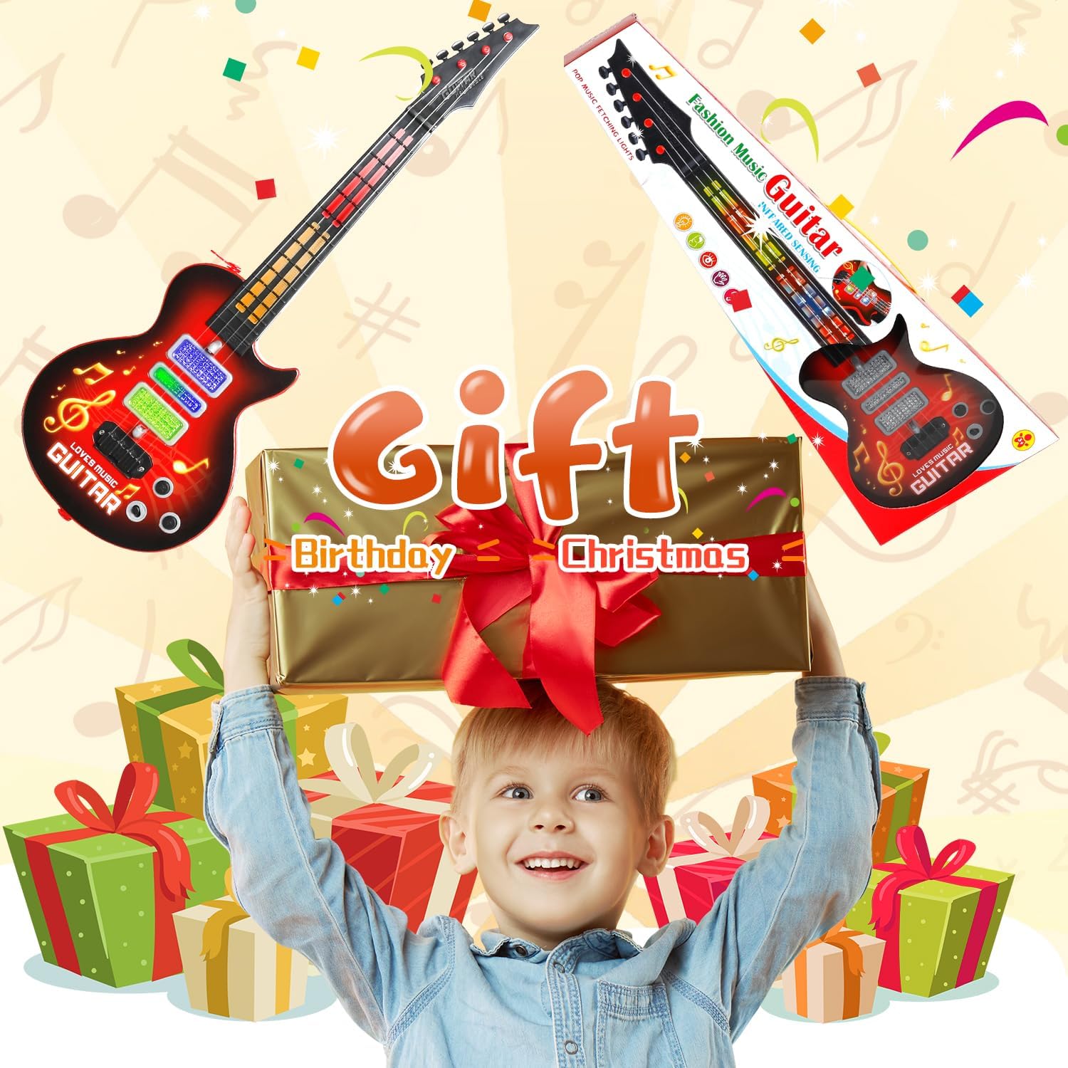 - Educational Musical Toys: The kids guitar toy built-in 8 kinds of tones or melody music. And the flash light will attracting kids' attention when press the button. Development the kids sensitivity of music. Also can exercise hand-eye coordination, motor coordination. Perfect solution for beginners who want to learn to play guitar and develop children stage performance. It is the best learning musical toys for 3 4 5 year old boys and girls.
