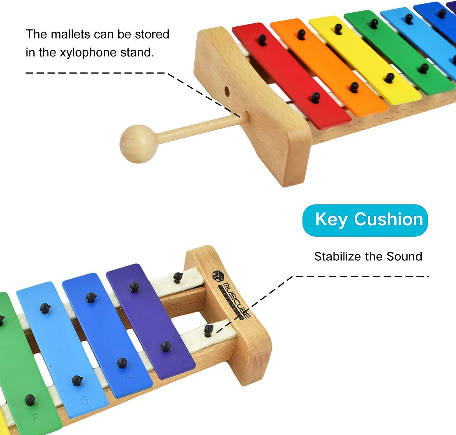 - ♬ Superb Sound: Eight precision tuned bars arranged in a C major scale provides an authentic musical experience and a pleasing soundscape. Each key in this toy xylophone matches their assigned notes for a great learning and musical experience. The wood mallets Idea for Kindergarten, school, family music education.