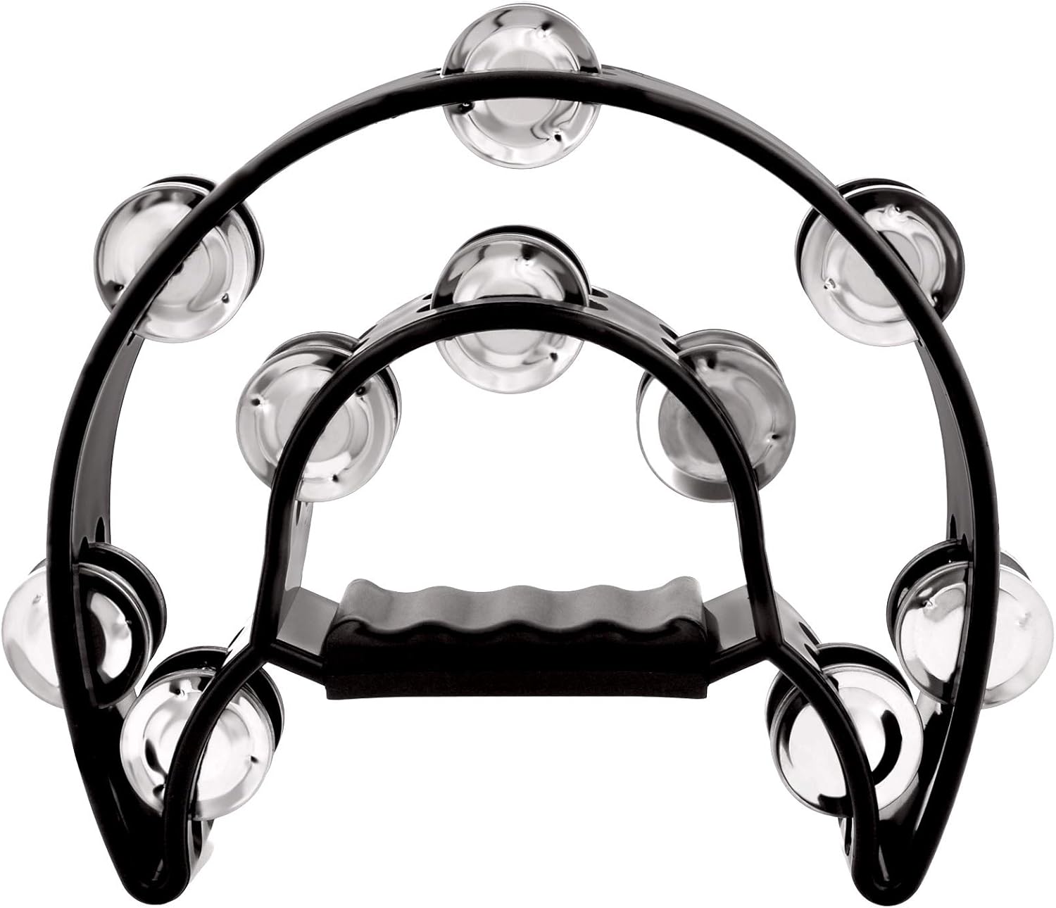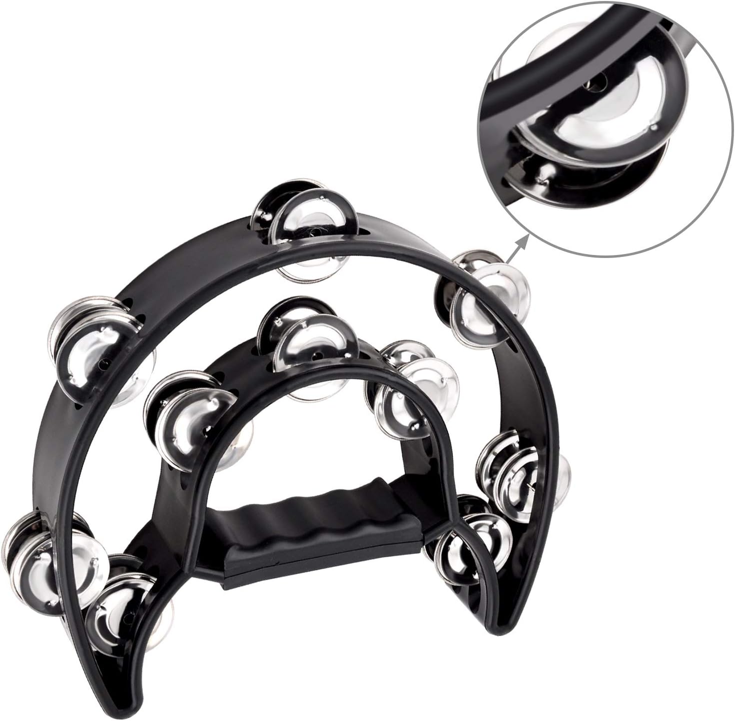 EastRock Double Row Tambourine,Metal Jingles Hand Held Percussion-Half Moon Tambourine for Adults, KTV, Party Black