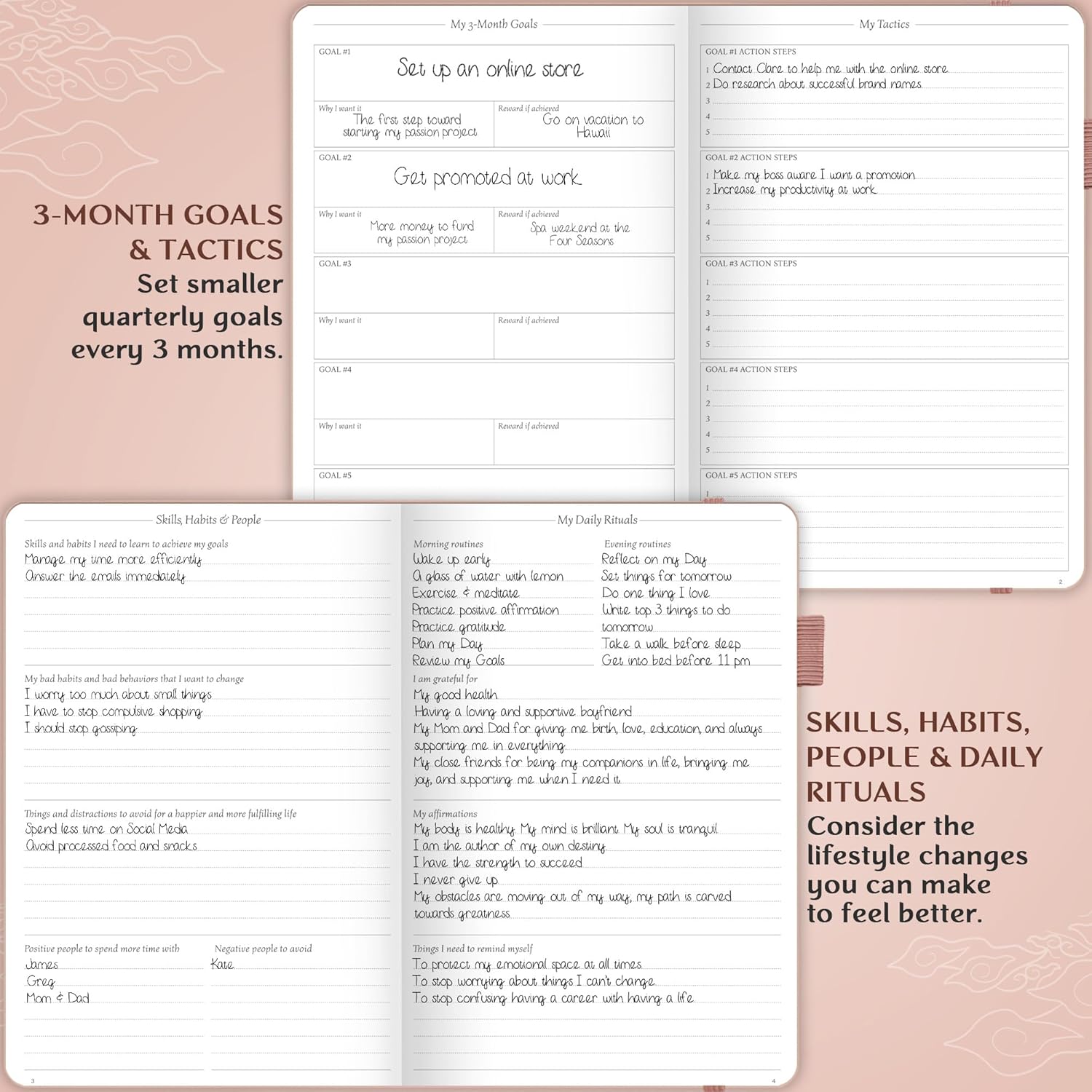 - IMPROVE WORK-LIFE BALANCE, BUILD NEW HABITS & FEEL HAPPIER - Become your best self by setting and achieving goals in all of the important areas of your life, other than work, on a weekly basis. Bring more healthy habits & positive daily rituals into your life, and stick to them by using the habit tracker section of the daily schedule planner for productivity. Incorporate gratitude and affirmation techniques for a more inspired and happier everyday life.