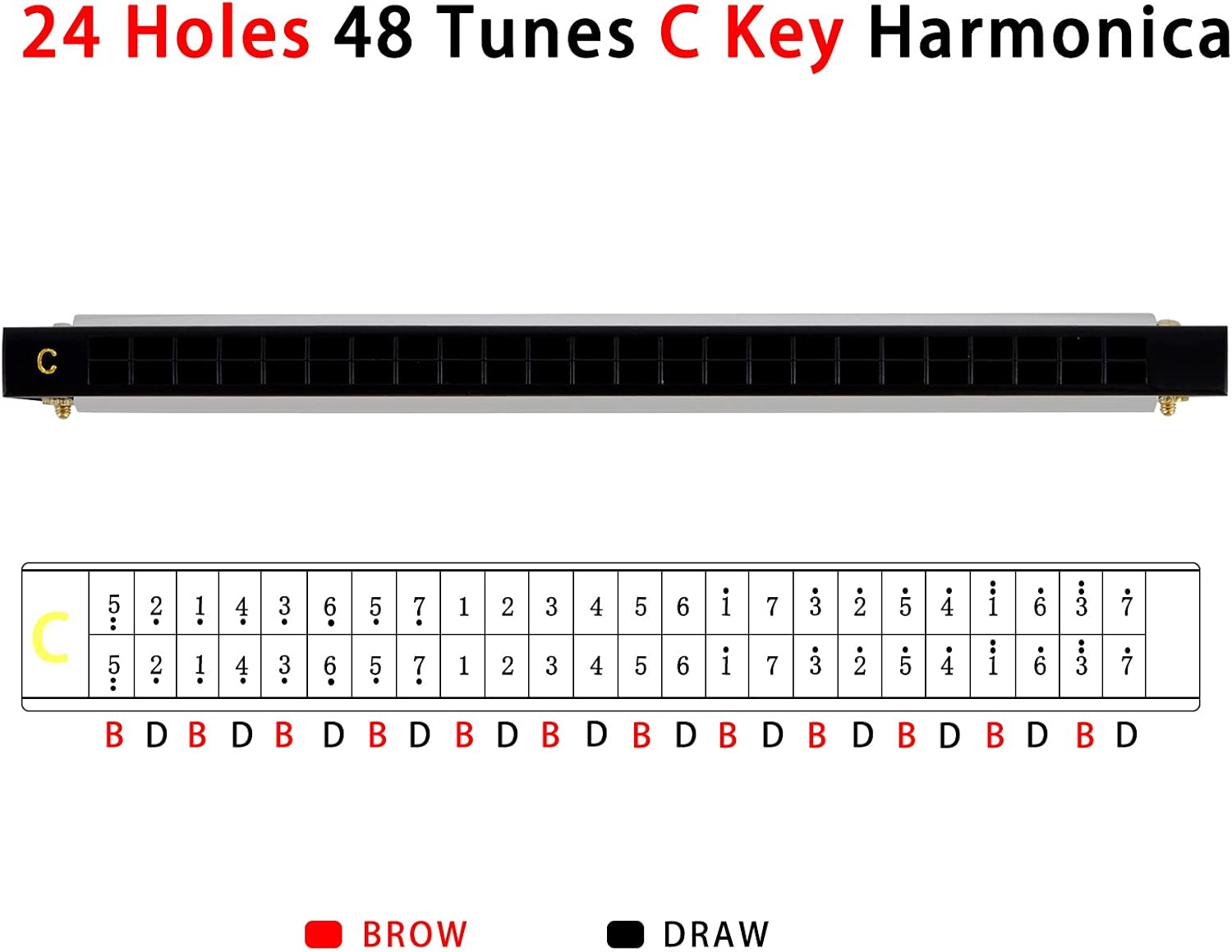 - Suitable: EastRock 24 Hole-Harmonica Key of C is designed to practicing, beginners and intermediate players. This harmonica is perfect for solo playing as well as an accompaniment for guitar and other instruments.