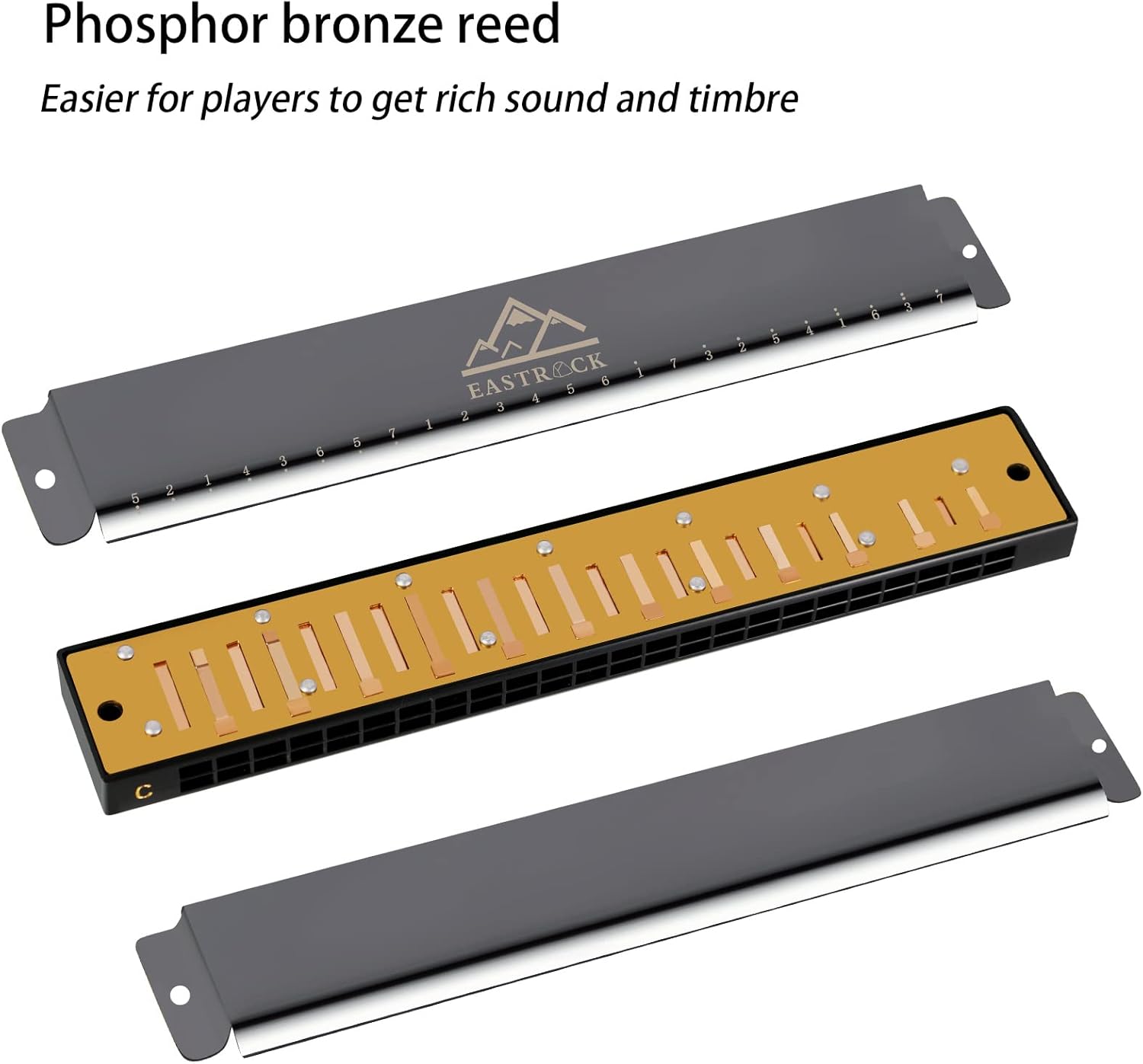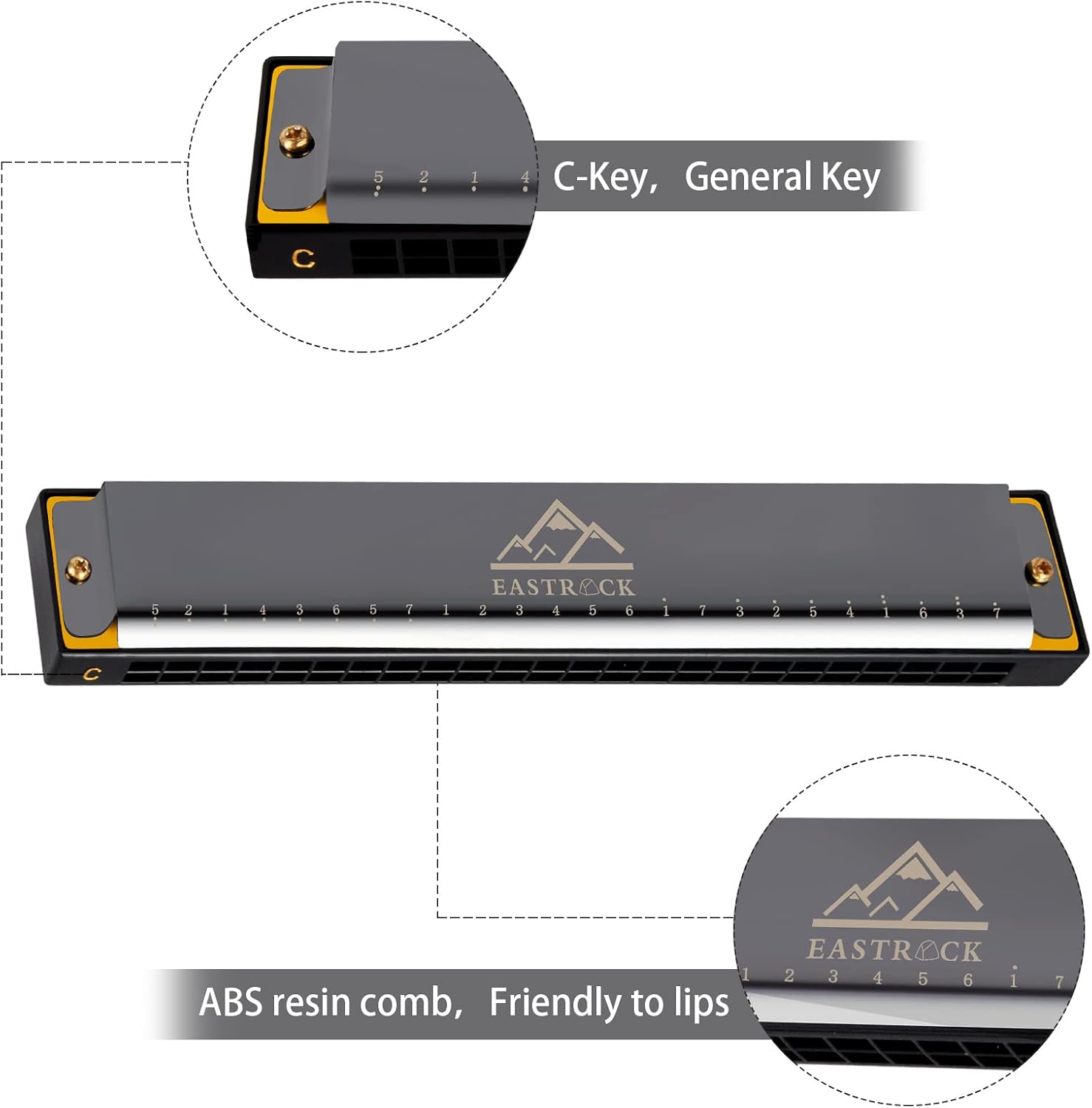 EastRock Blues Harmonica 24 Hole C Key with Case, Mouth Organ Harp, Diatonic Harmonica for Beginner, Adult, Kids, Professional, Students, Friends, Gifts